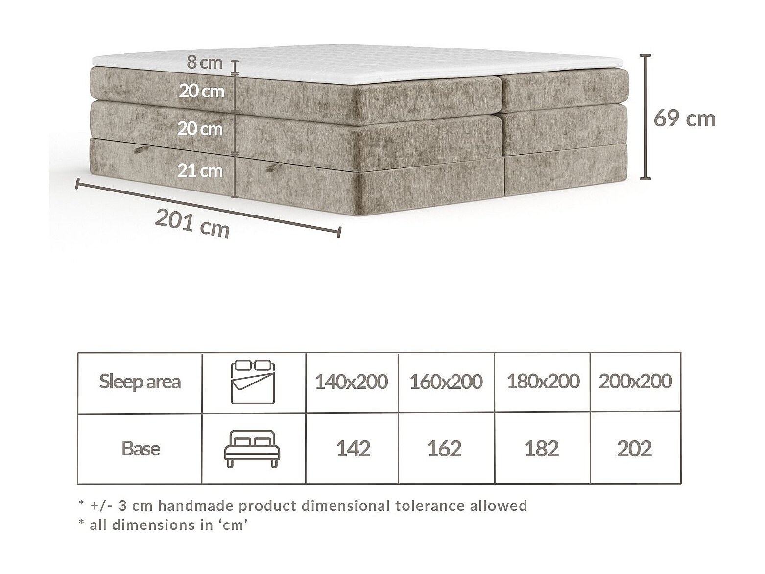 Lit boxspring en tissu chenille Juniper - matelas - surmatelas - 200x200 cm - rose