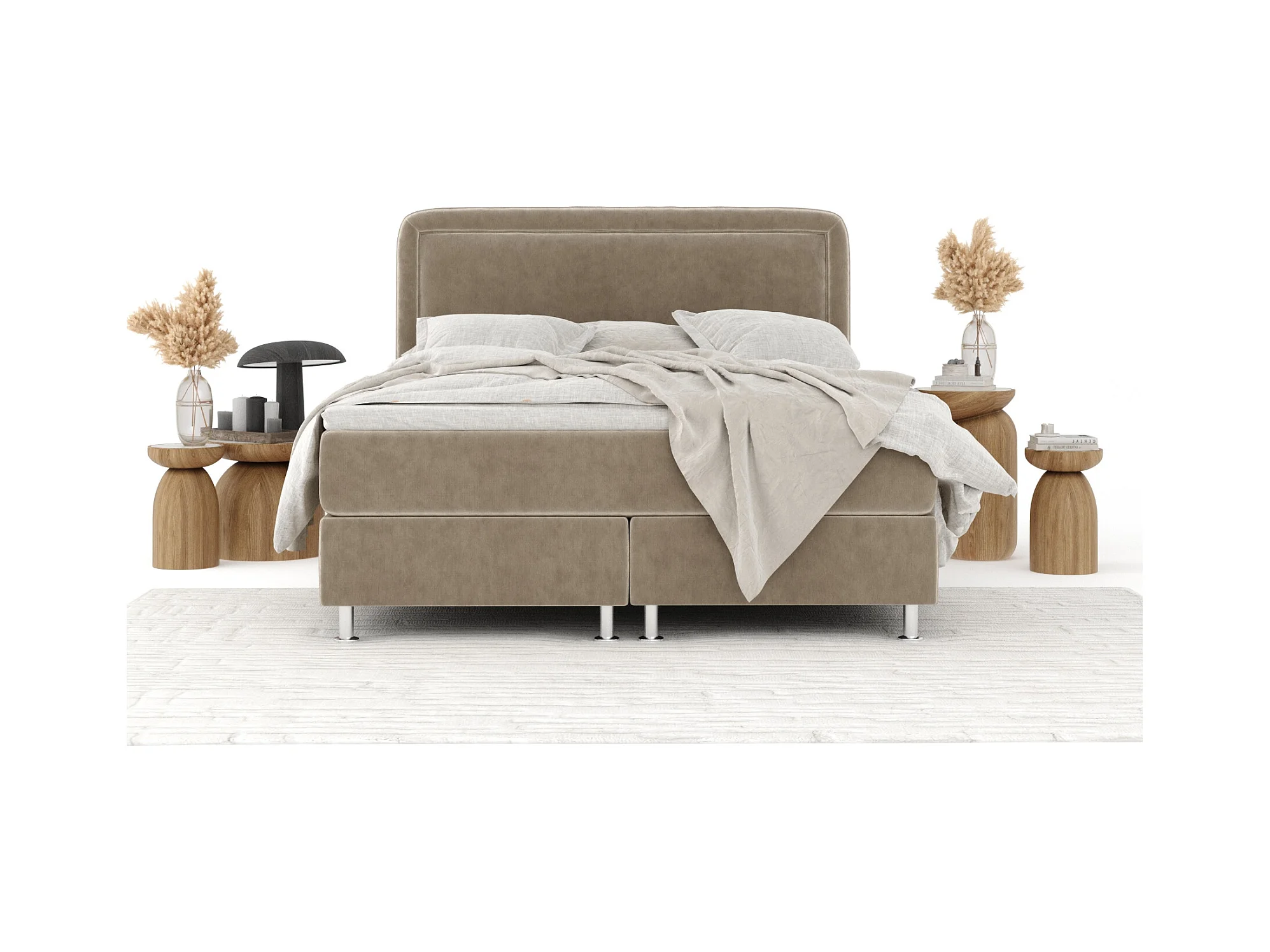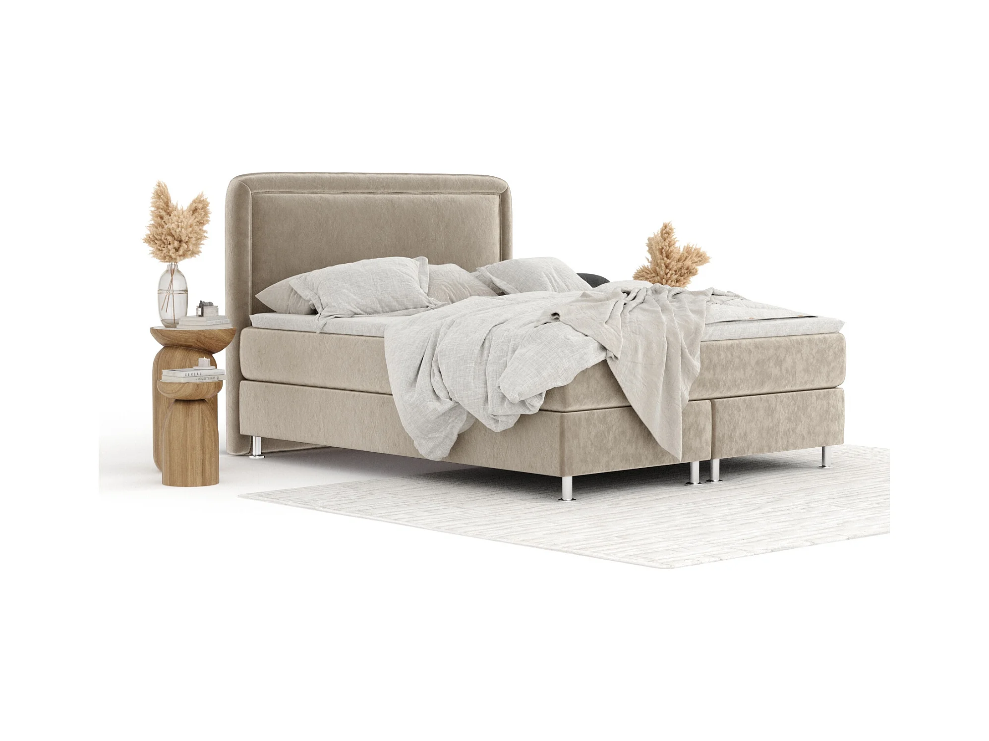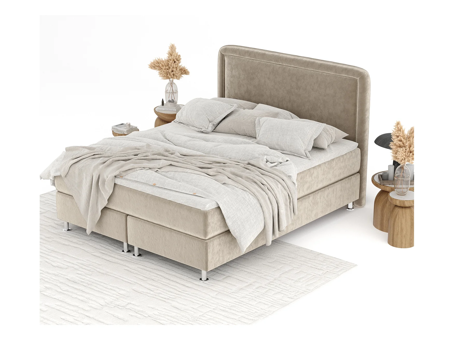 Lit boxspring en tissu velours Salvi - matelas - surmatelas - 140x200 cm - beige
