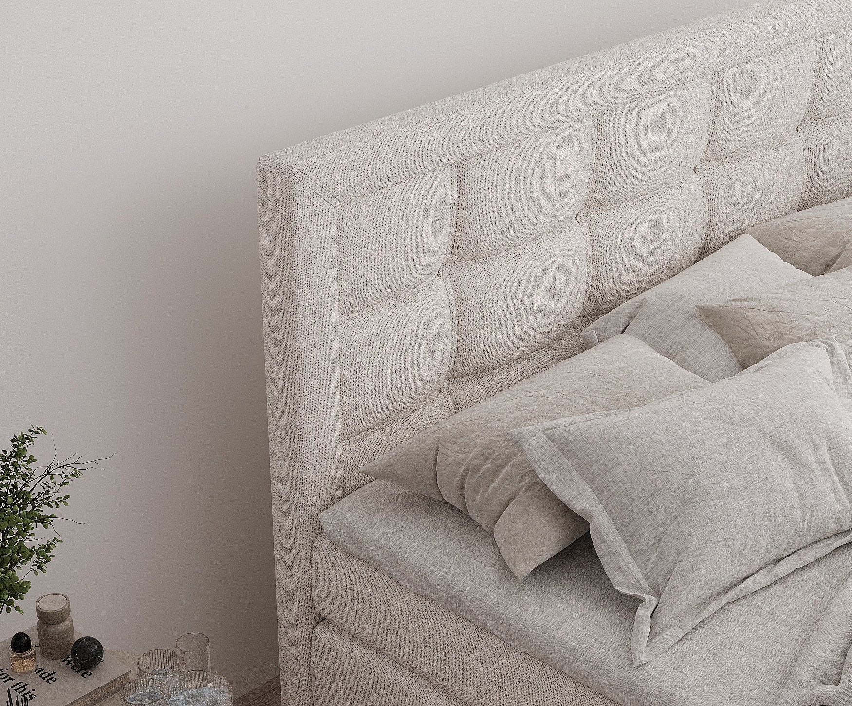 Lit boxspring en toile tissée Ambrosia - matelas - surmatelas - 200x200 cm - beige