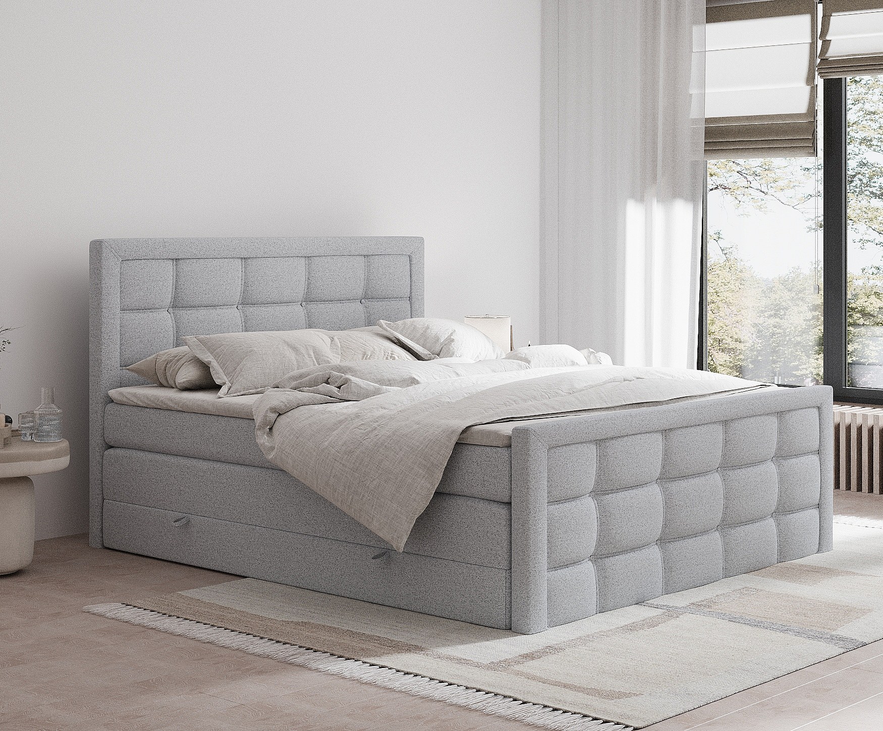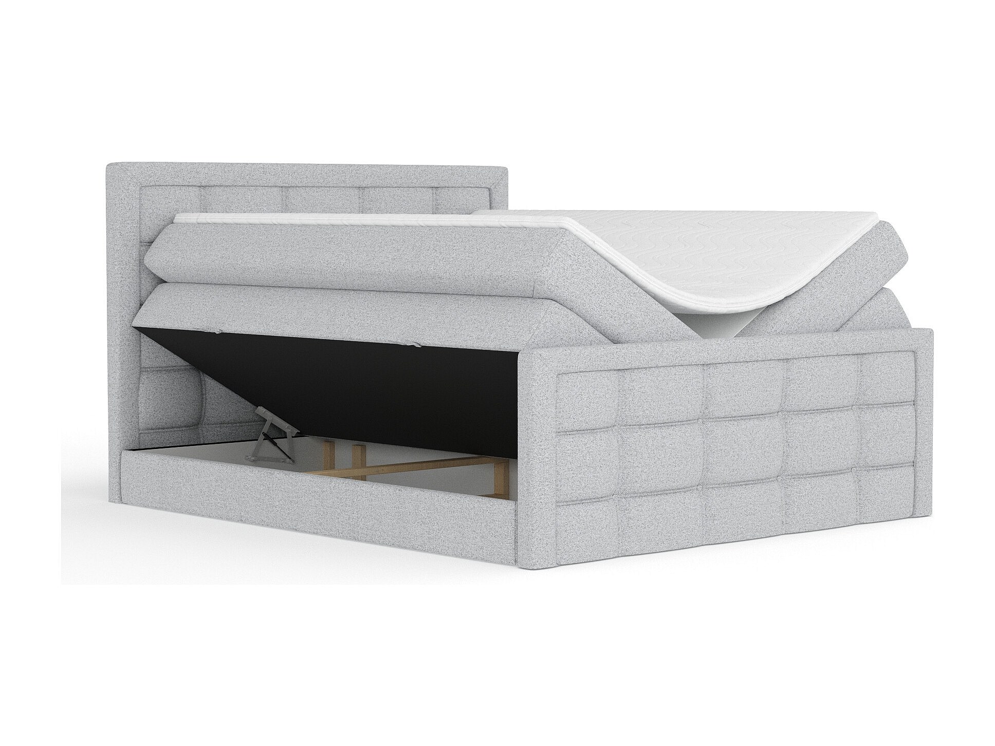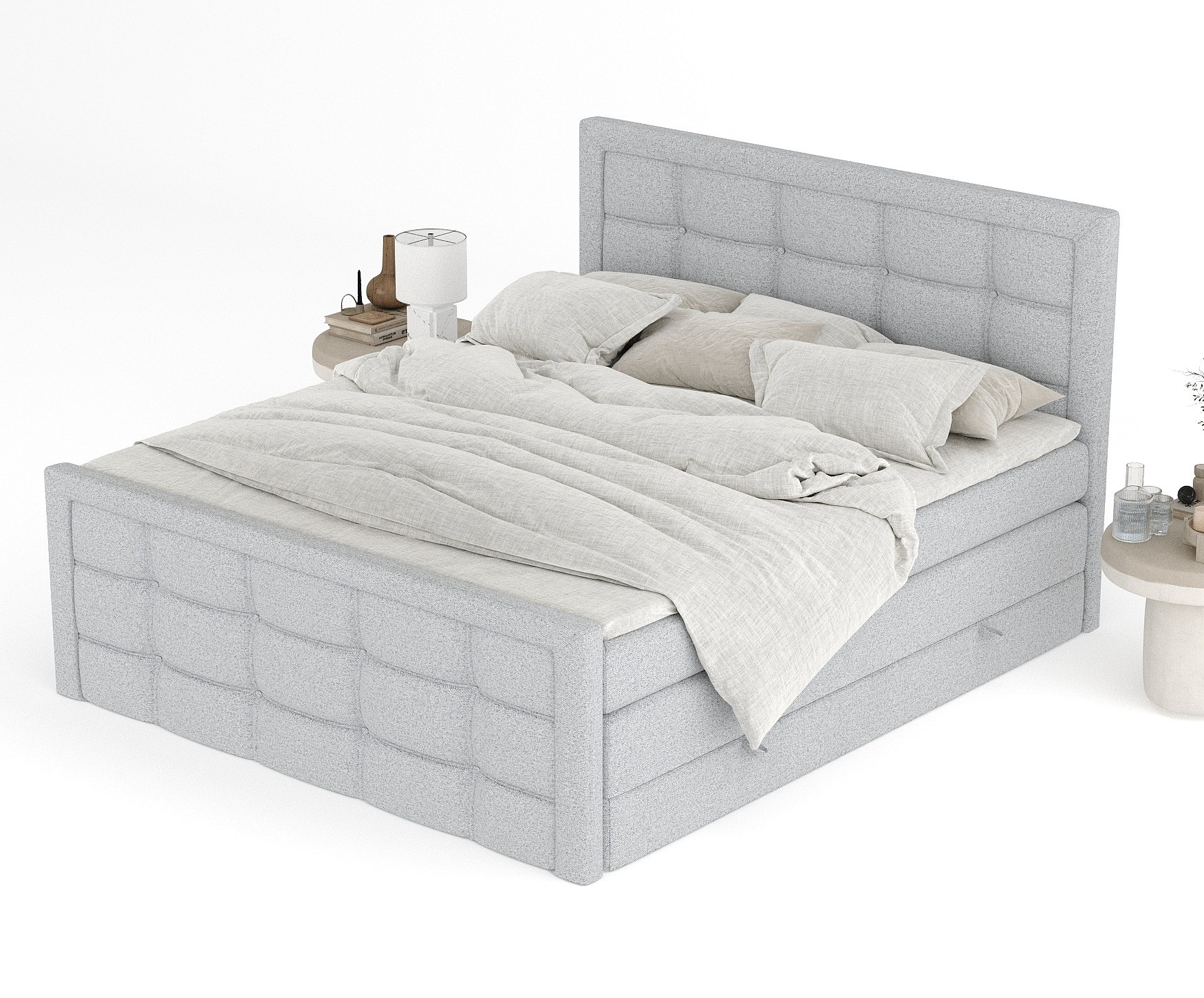 Lit boxspring en toile tissée Ambrosia - matelas - surmatelas - 200x200 cm - gris clair