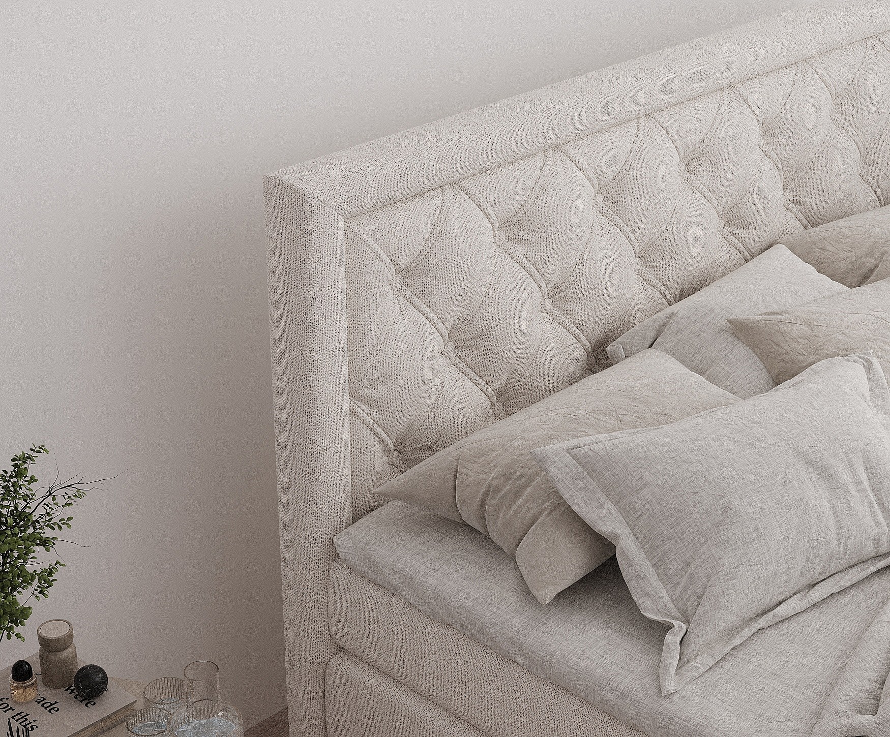 Lit boxspring en toile tissée Aurelia - matelas - surmatelas - 140x200 cm - beige