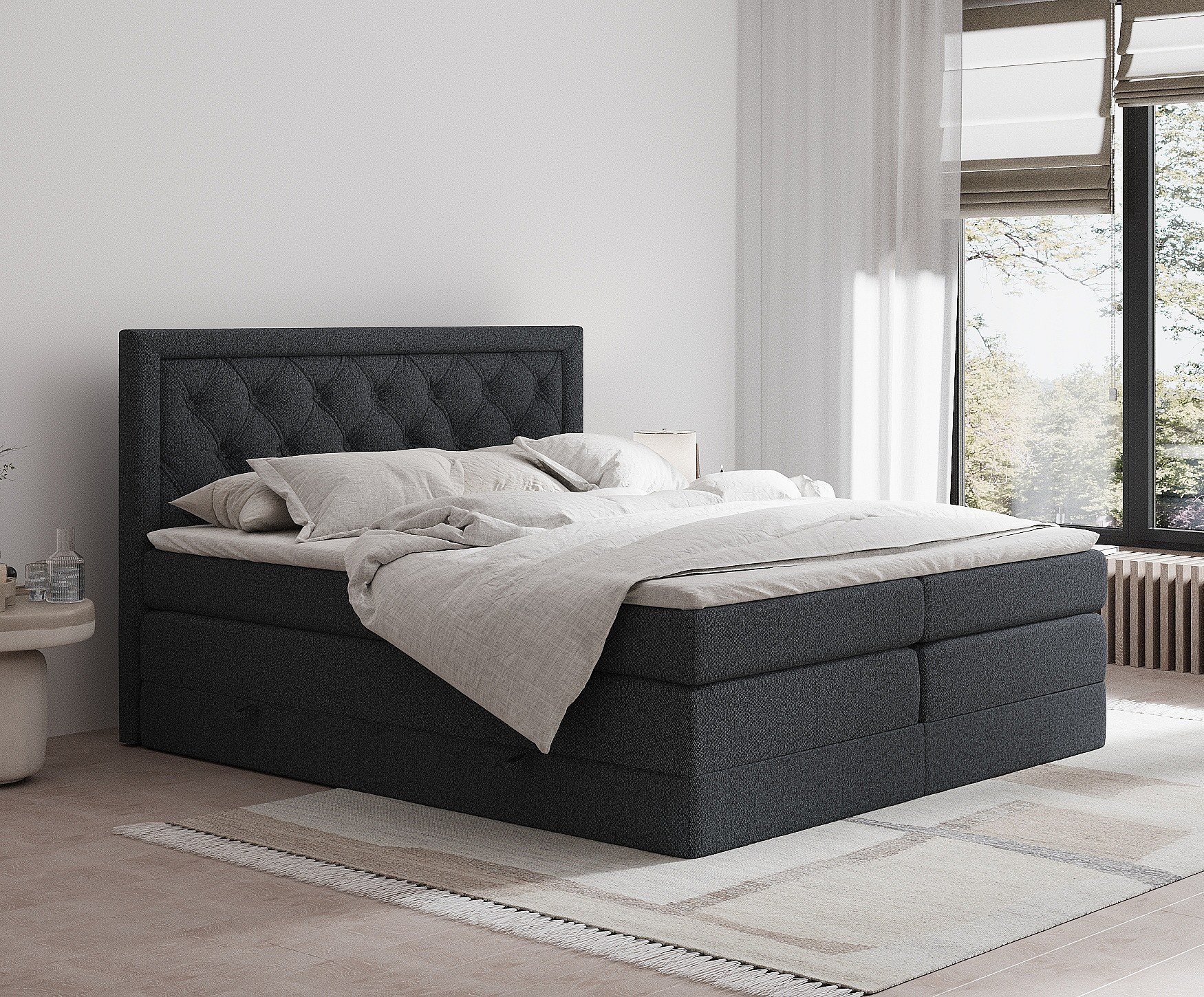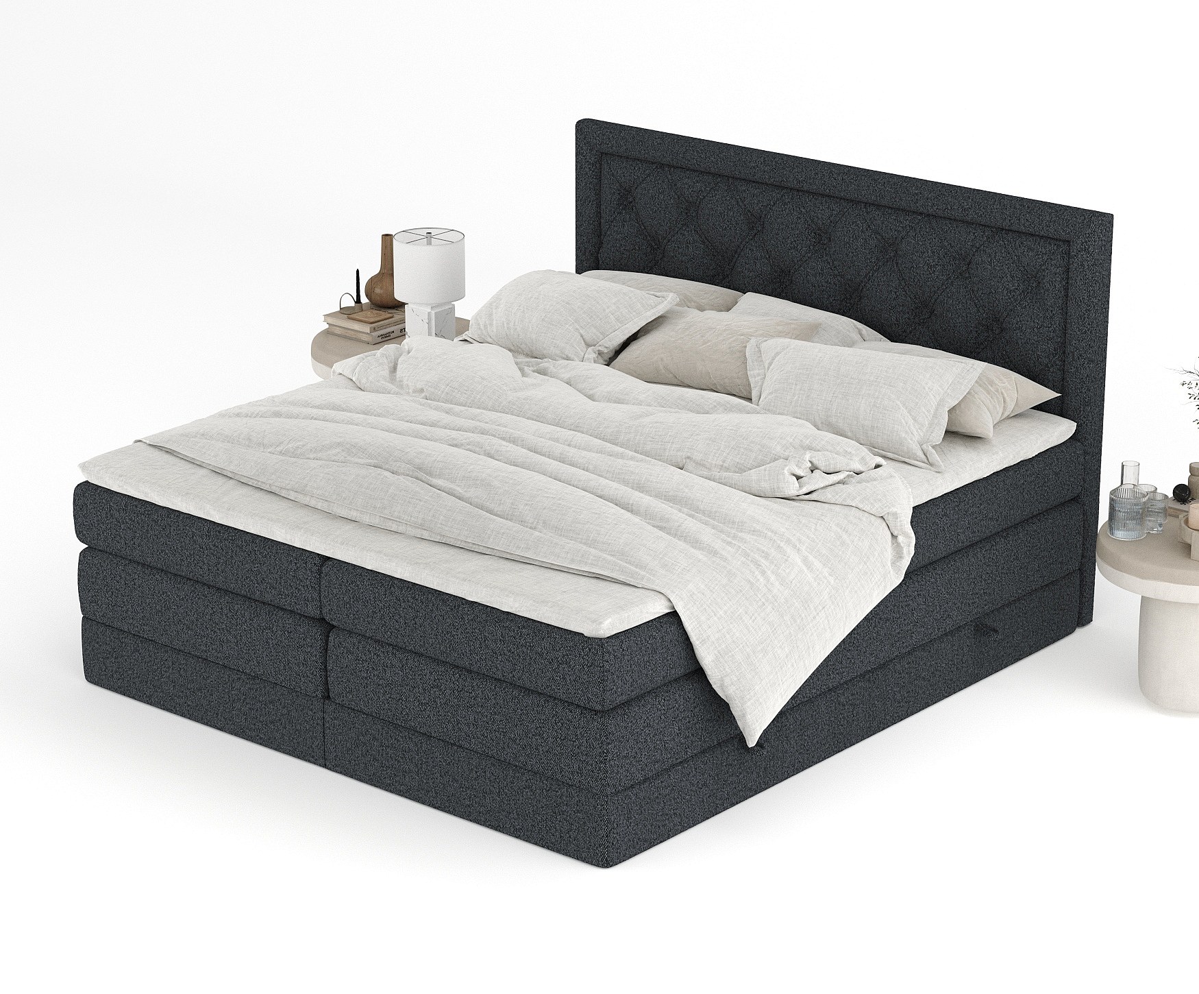 Lit boxspring en toile tissée Aurelia - matelas - surmatelas - 140x200 cm - noir