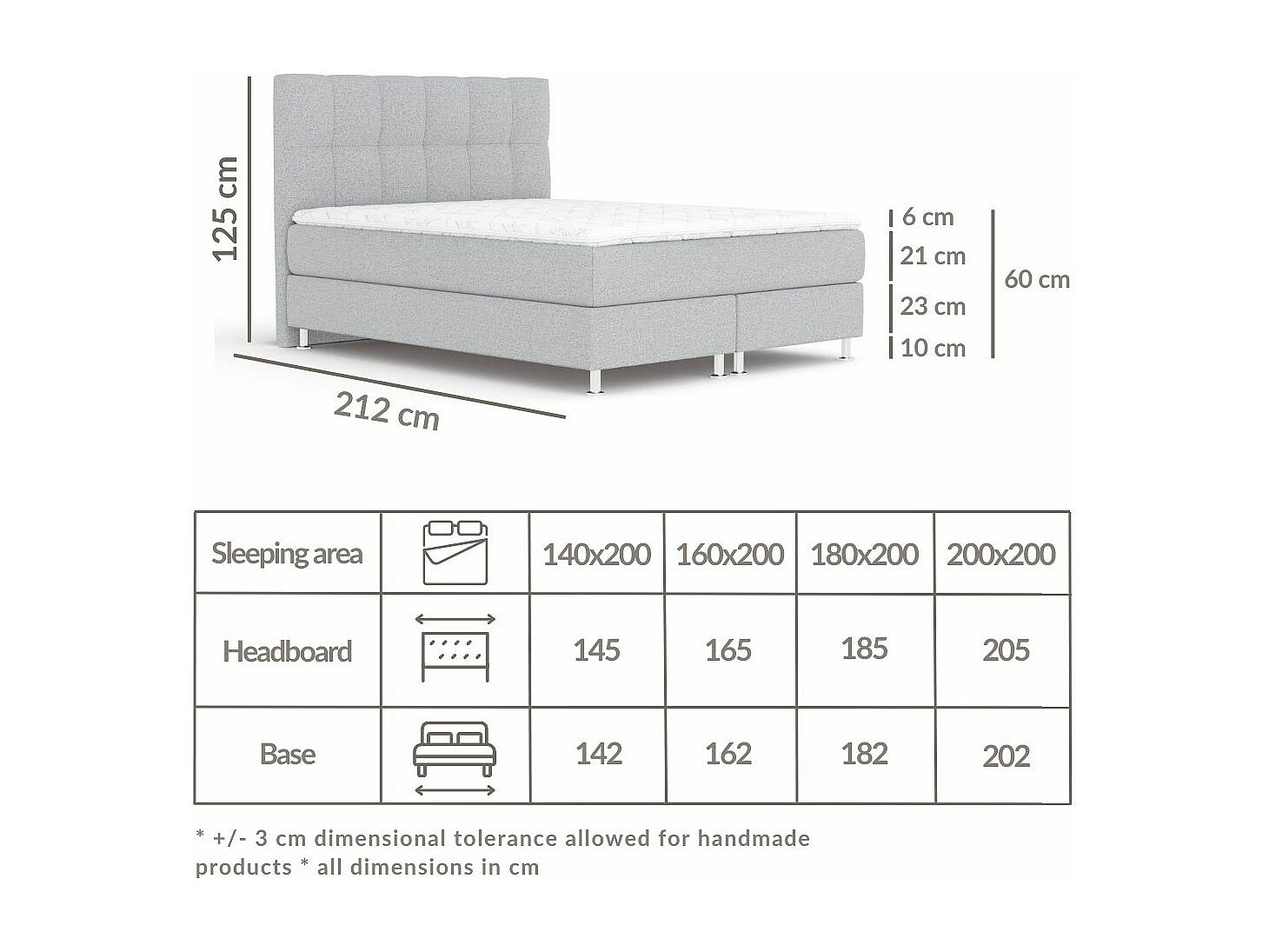 Lit boxspring en toile tissée Elisio - matelas - surmatelas - 140x200 cm - gris clair