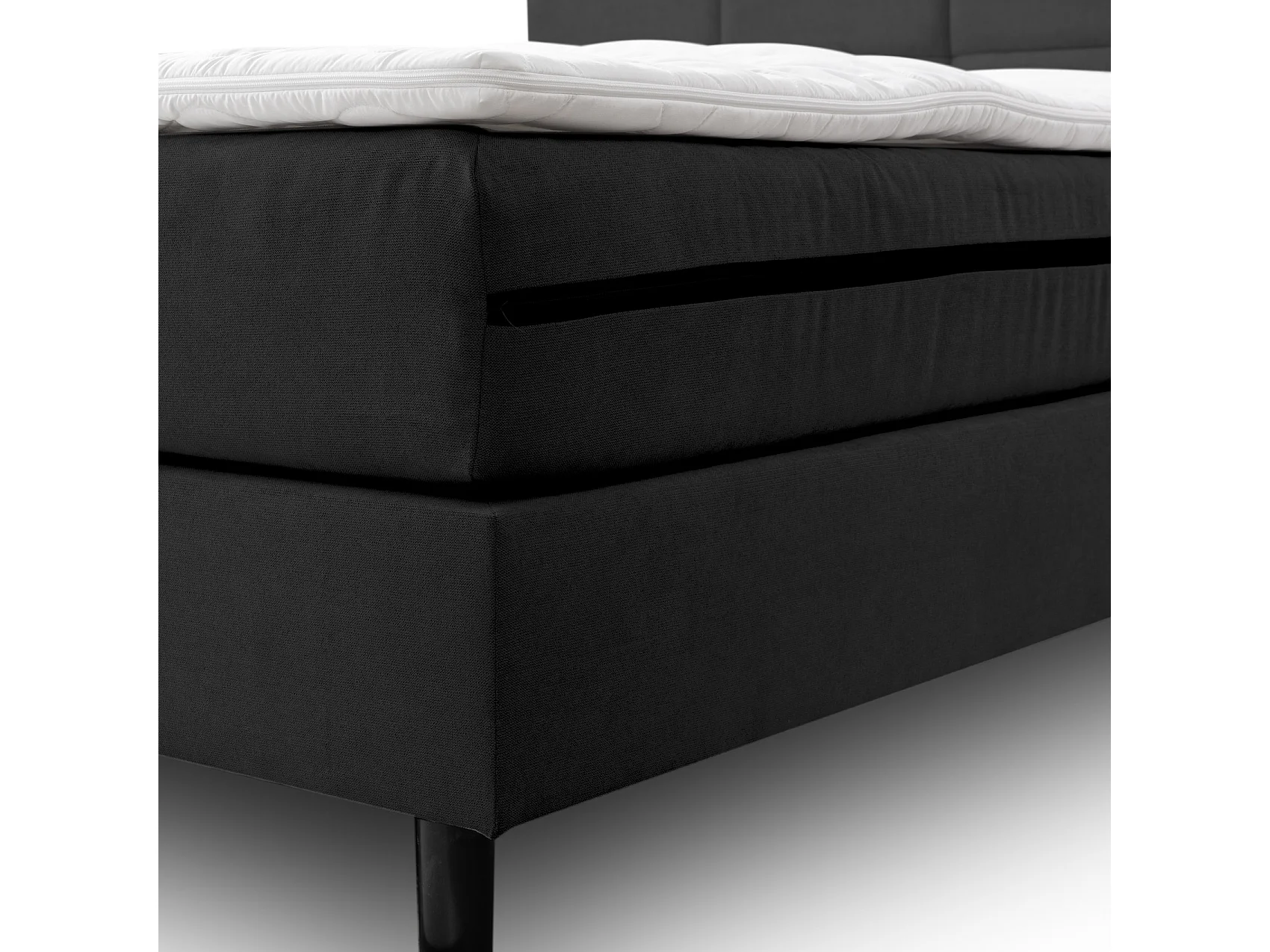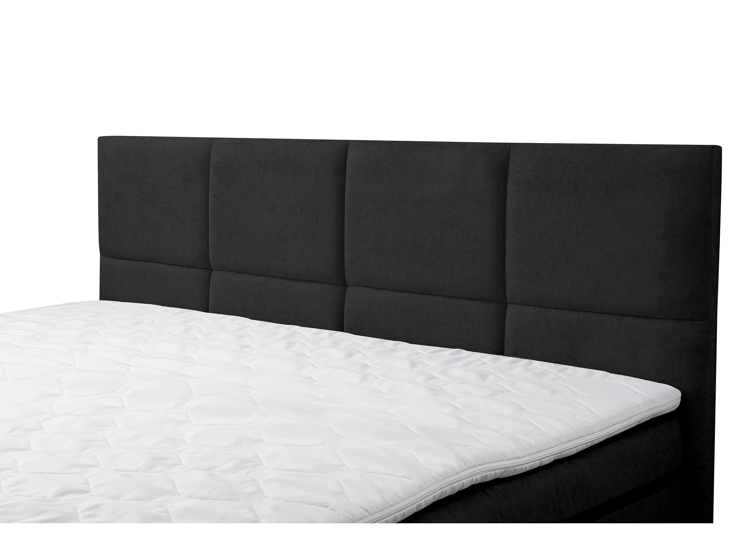 Lit boxspring Kansas, lit rembourré Dimensions : 180 x 200 cm, couleur : noir, tissu velours, lit double avec matelas Bonell H3 et surmatelas inclus