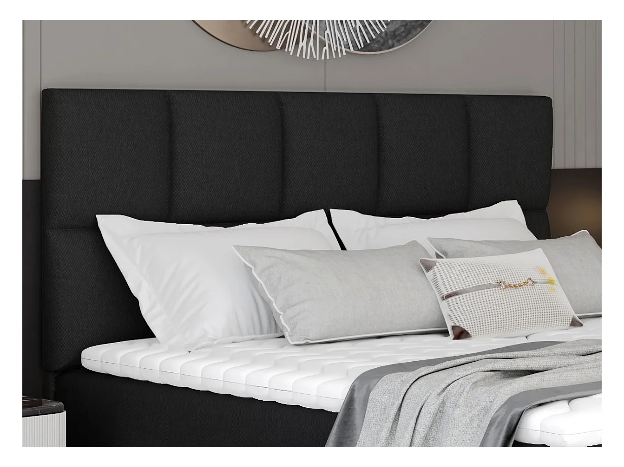 Lit boxspring tissu noir avec matelas et surmatelas Lizen-Couchage 140x200 cm