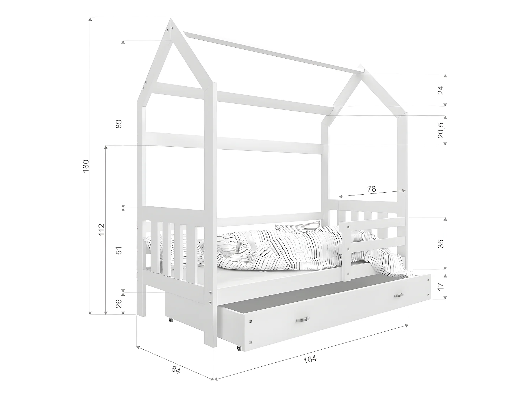 Lit Cabane 2 80x160 Gris - vert Livré avec sommiers, tiroir et matelas en mousse de 7cm