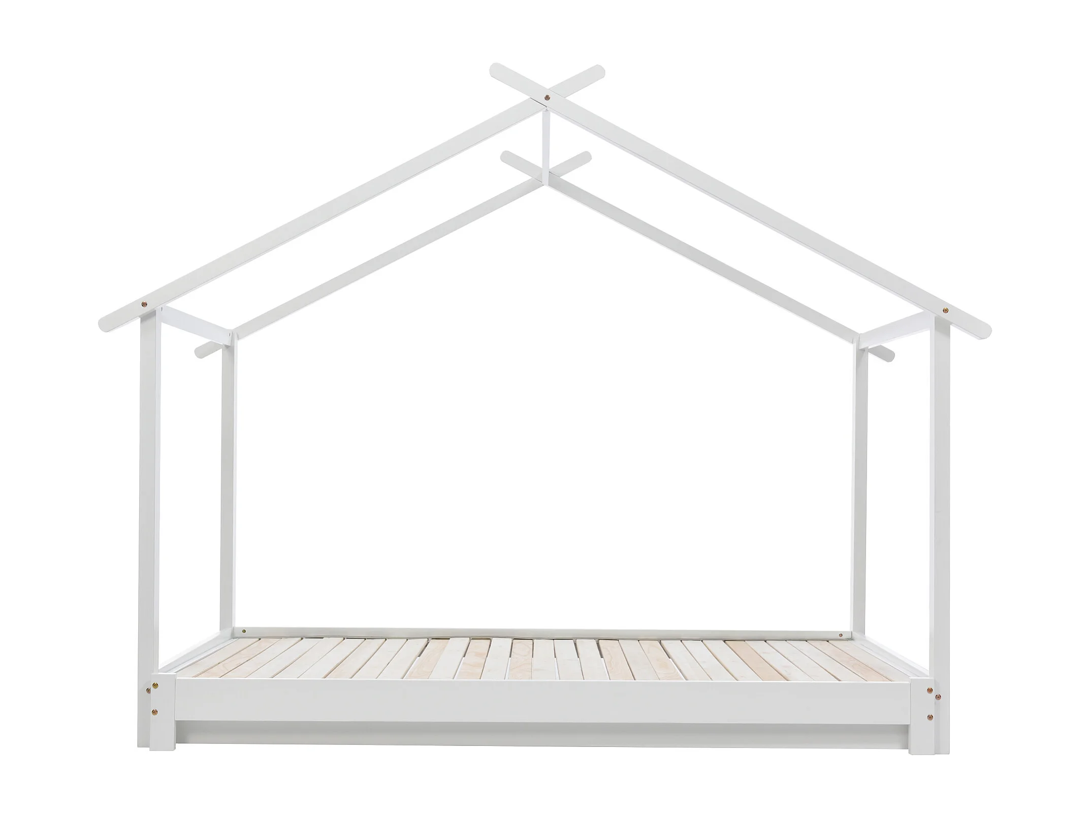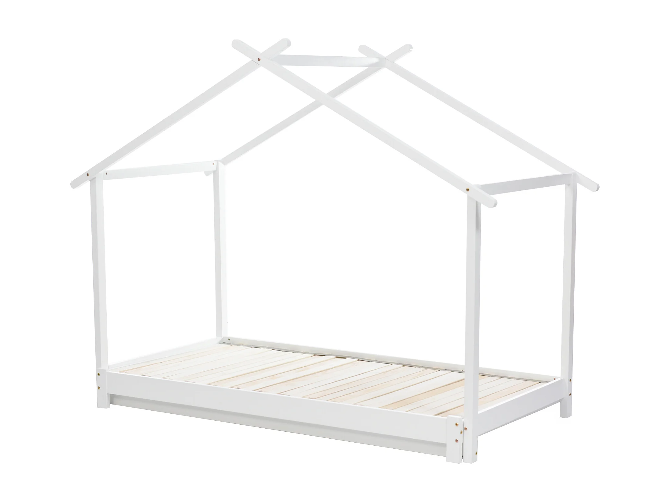 Lit cabane 90 x 190 cm - avec sommier à lattes - en pin - blanc - sans matelas