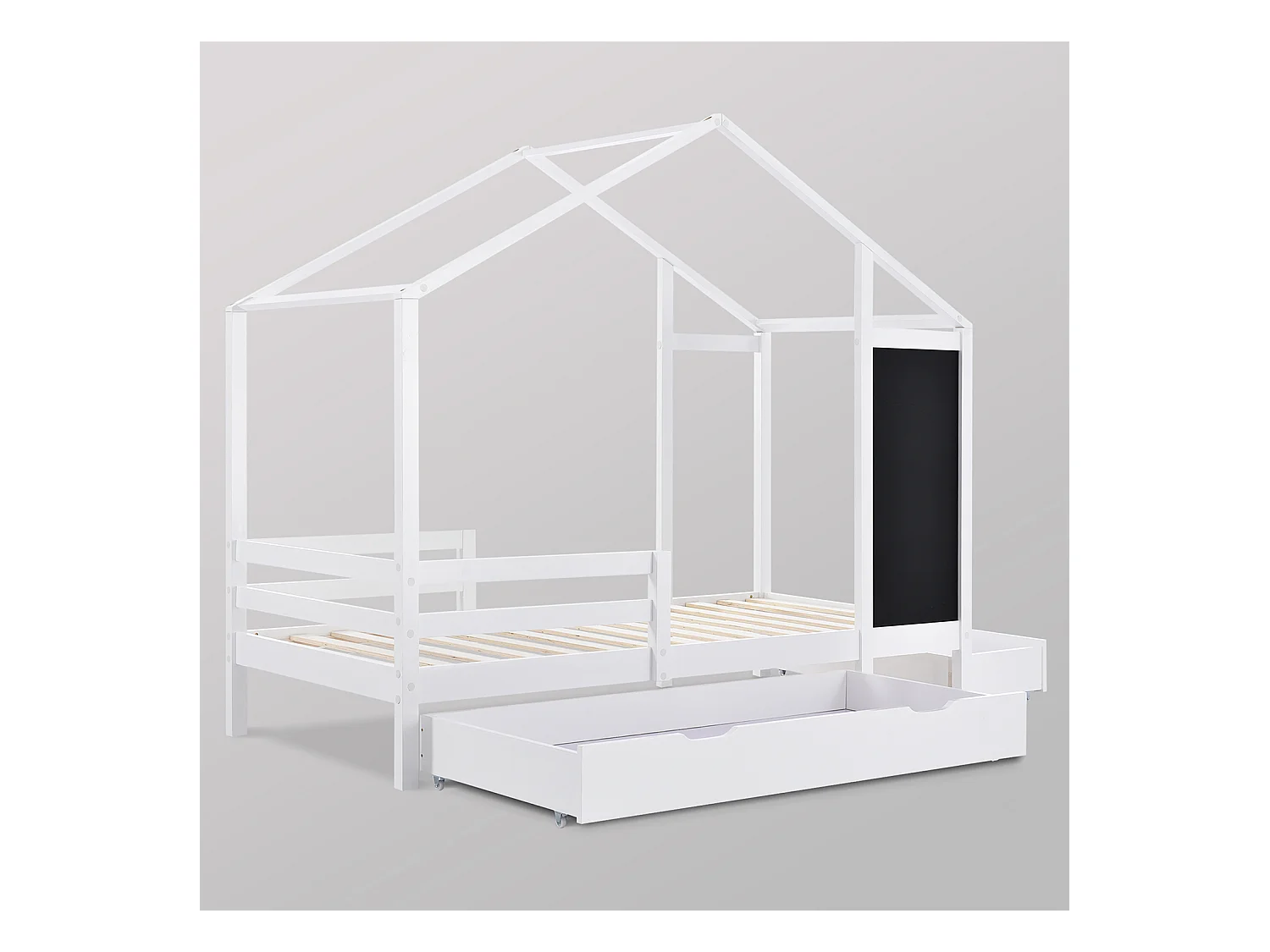 Lit cabane - 90 x 200 cm Lit en bois avec tableau et 2 tiroirs - Blanc - Sweiko