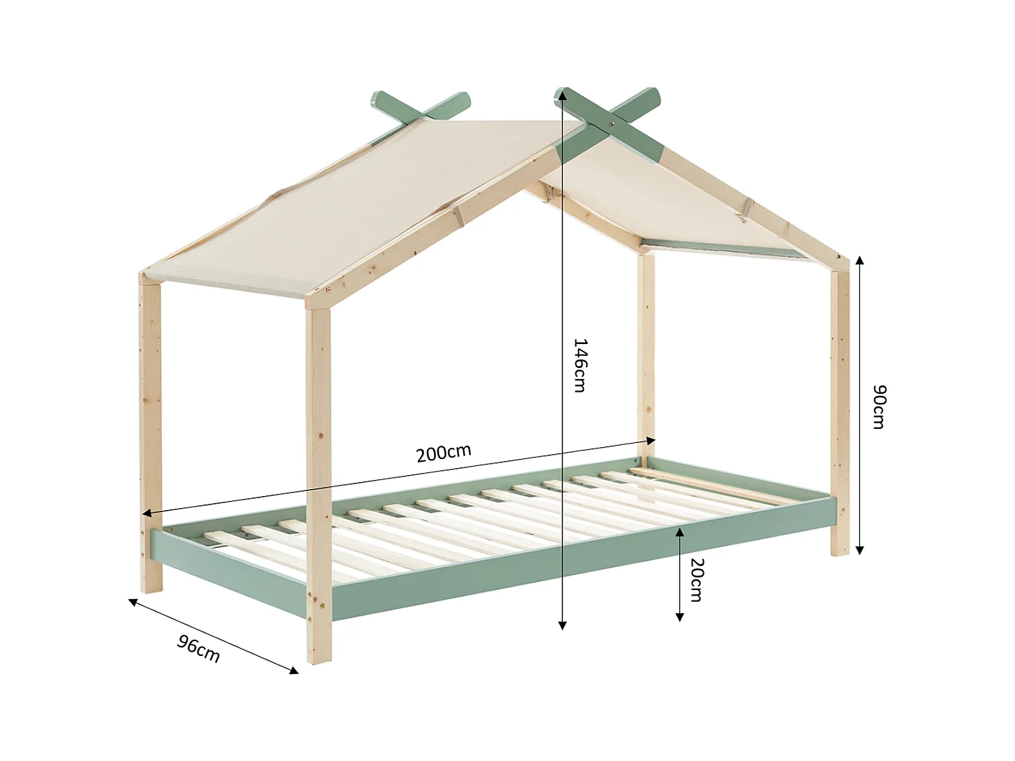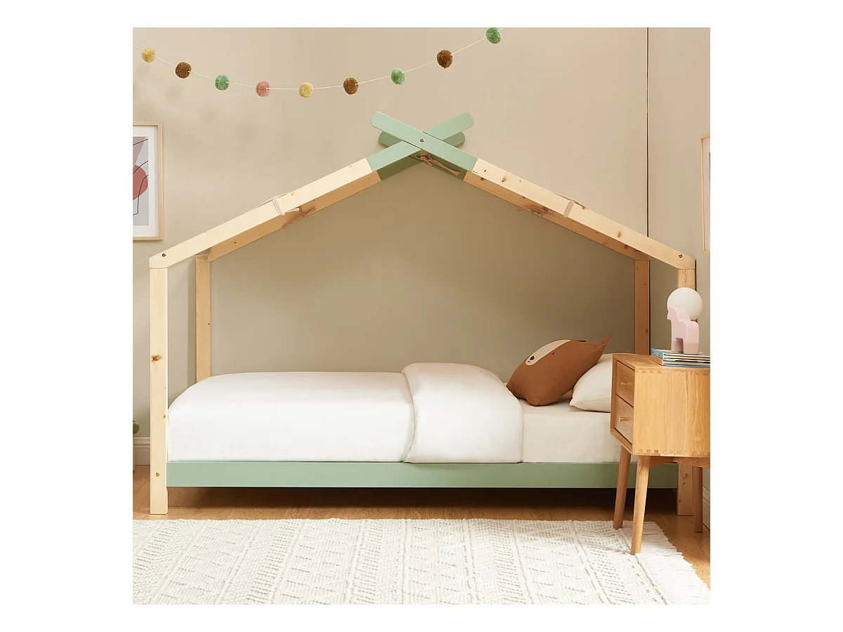 Lit cabane 90x190 en pin massif vert avec sommier - Charly