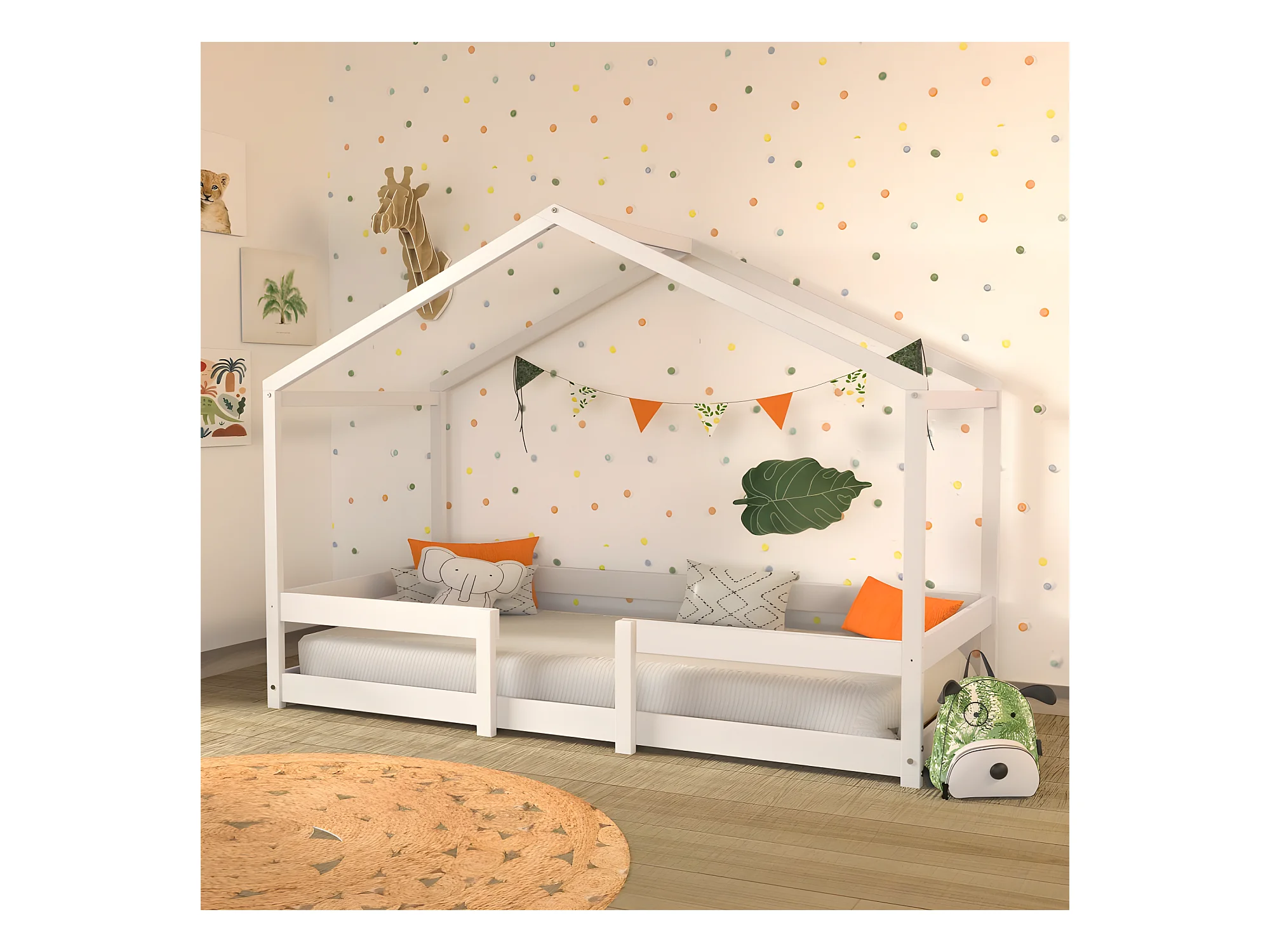 Lit cabane INDIANA 90x190 + sommier / blanc