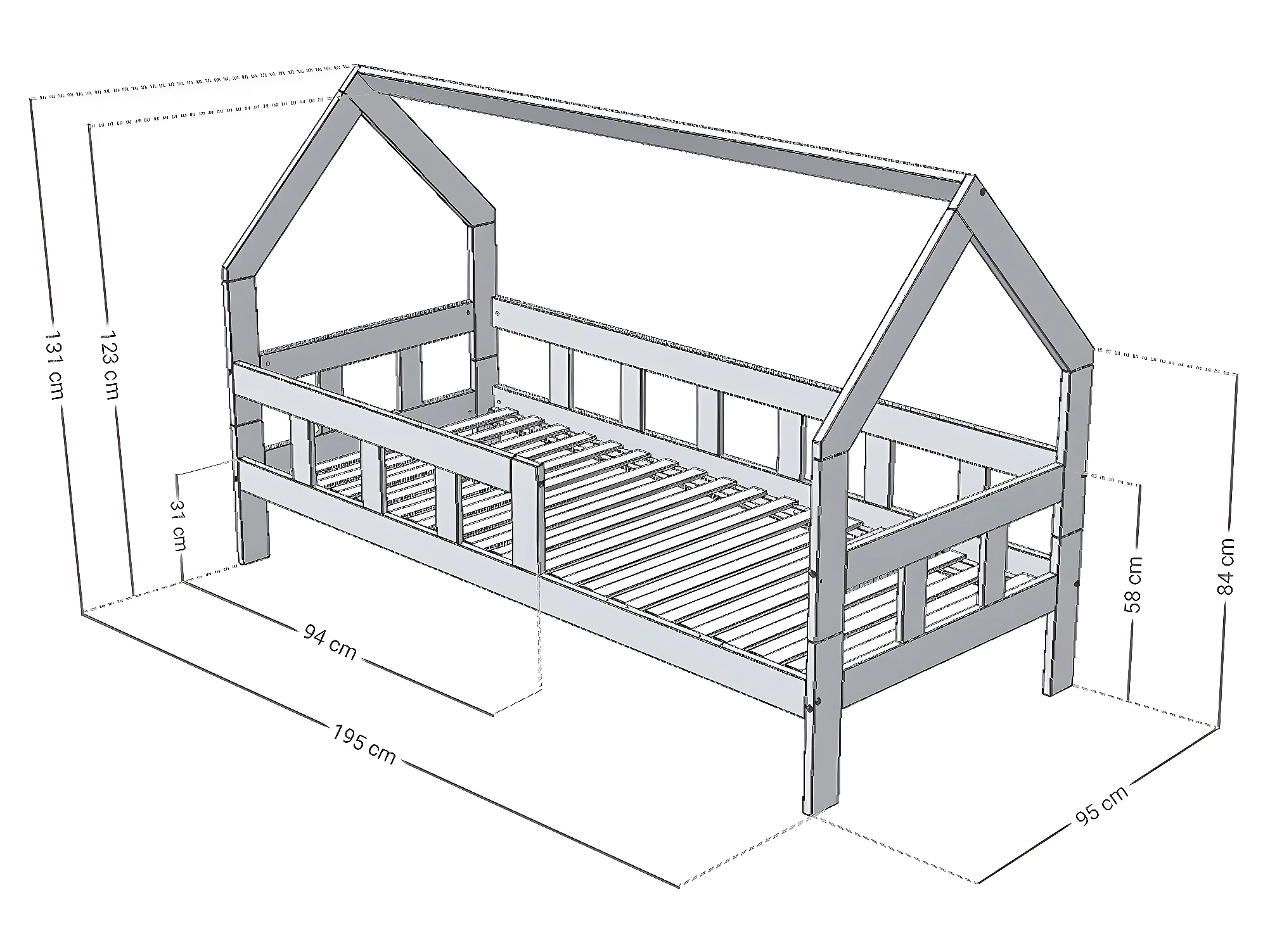 Lit cabane 90x190 sommier inclus Fence - Bois