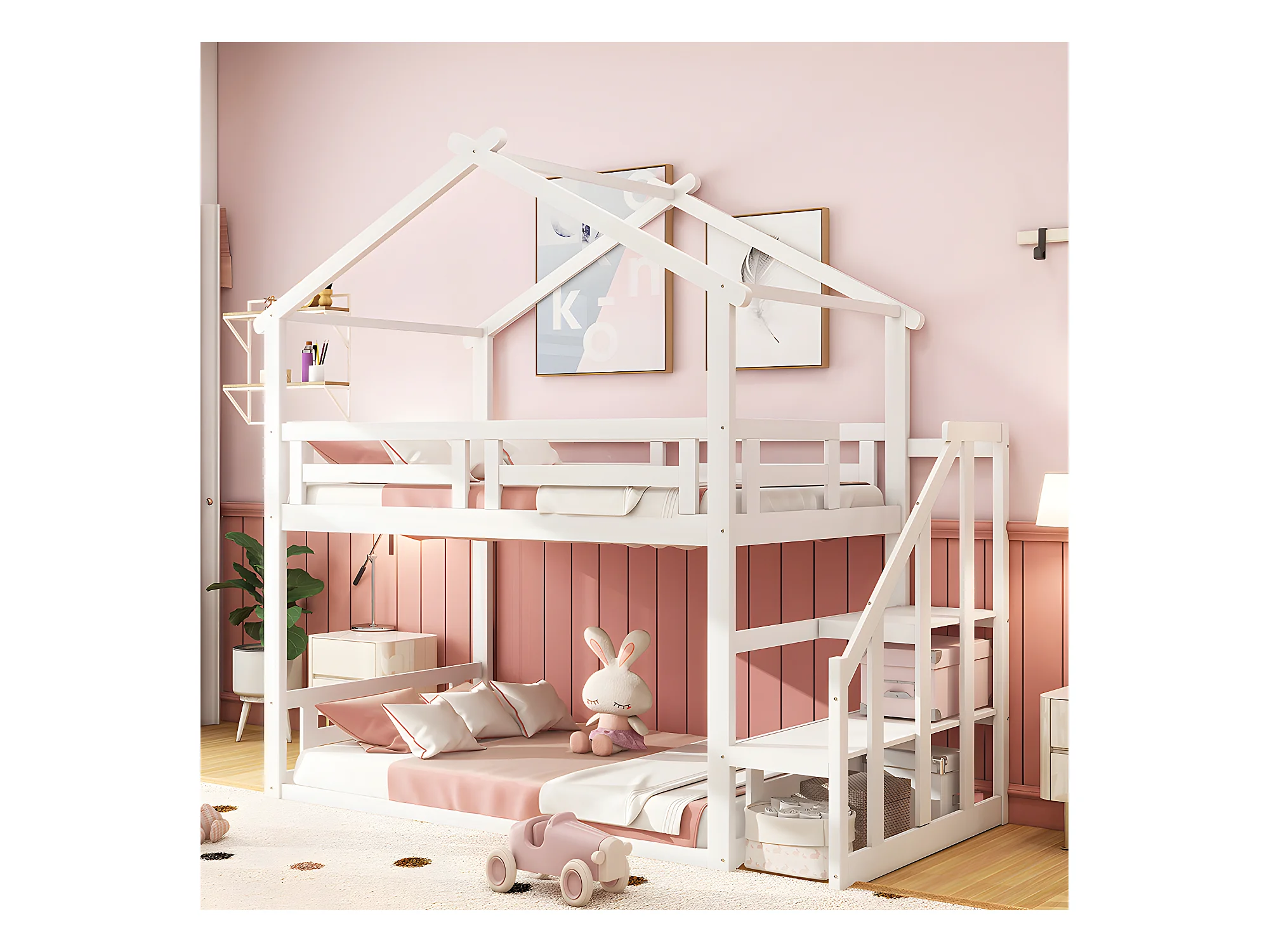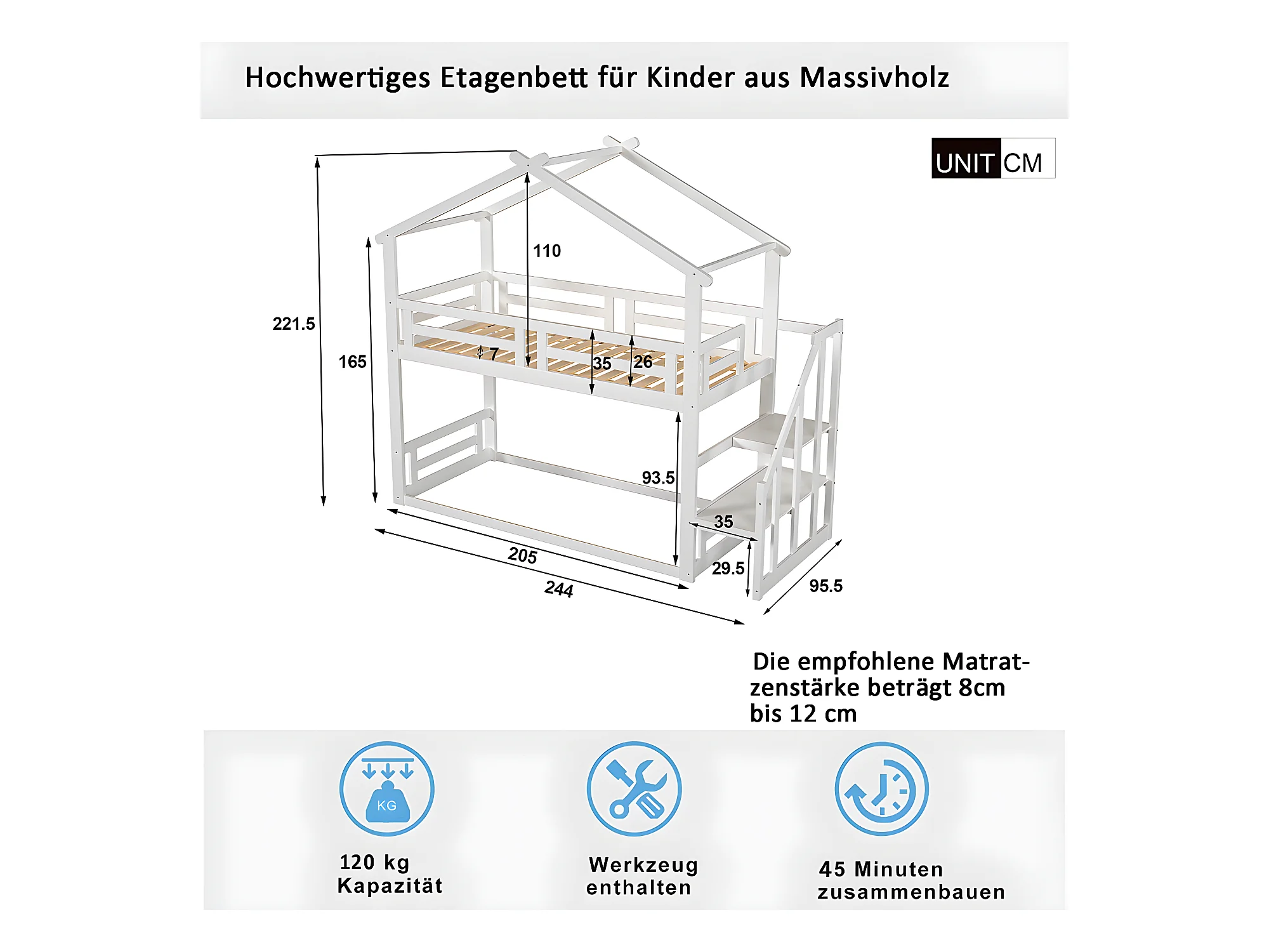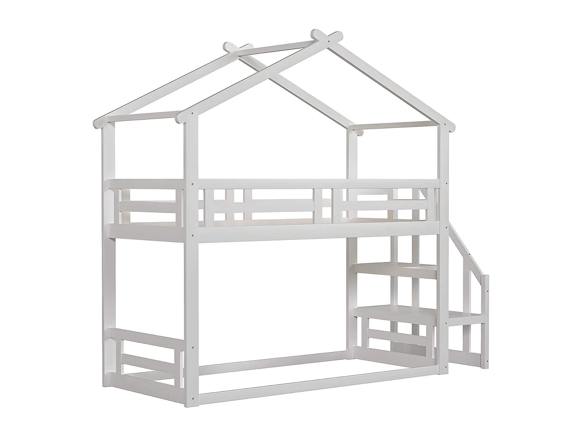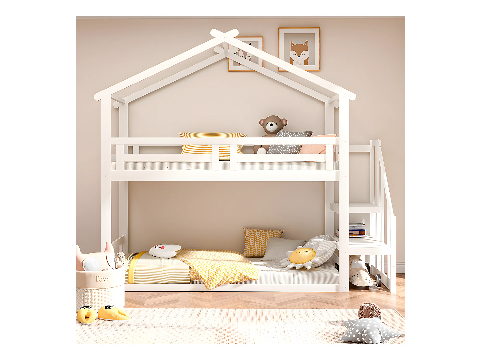 Lit cabane - 90x200 cm - avec escalier de sécurité - blanc - Sweiko