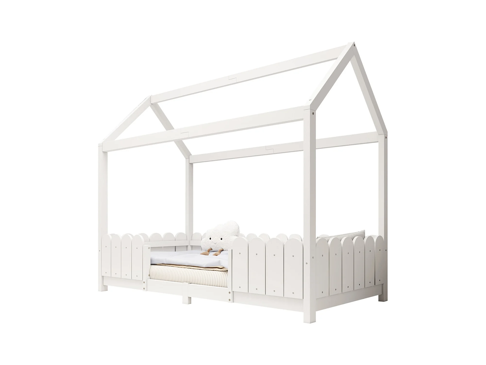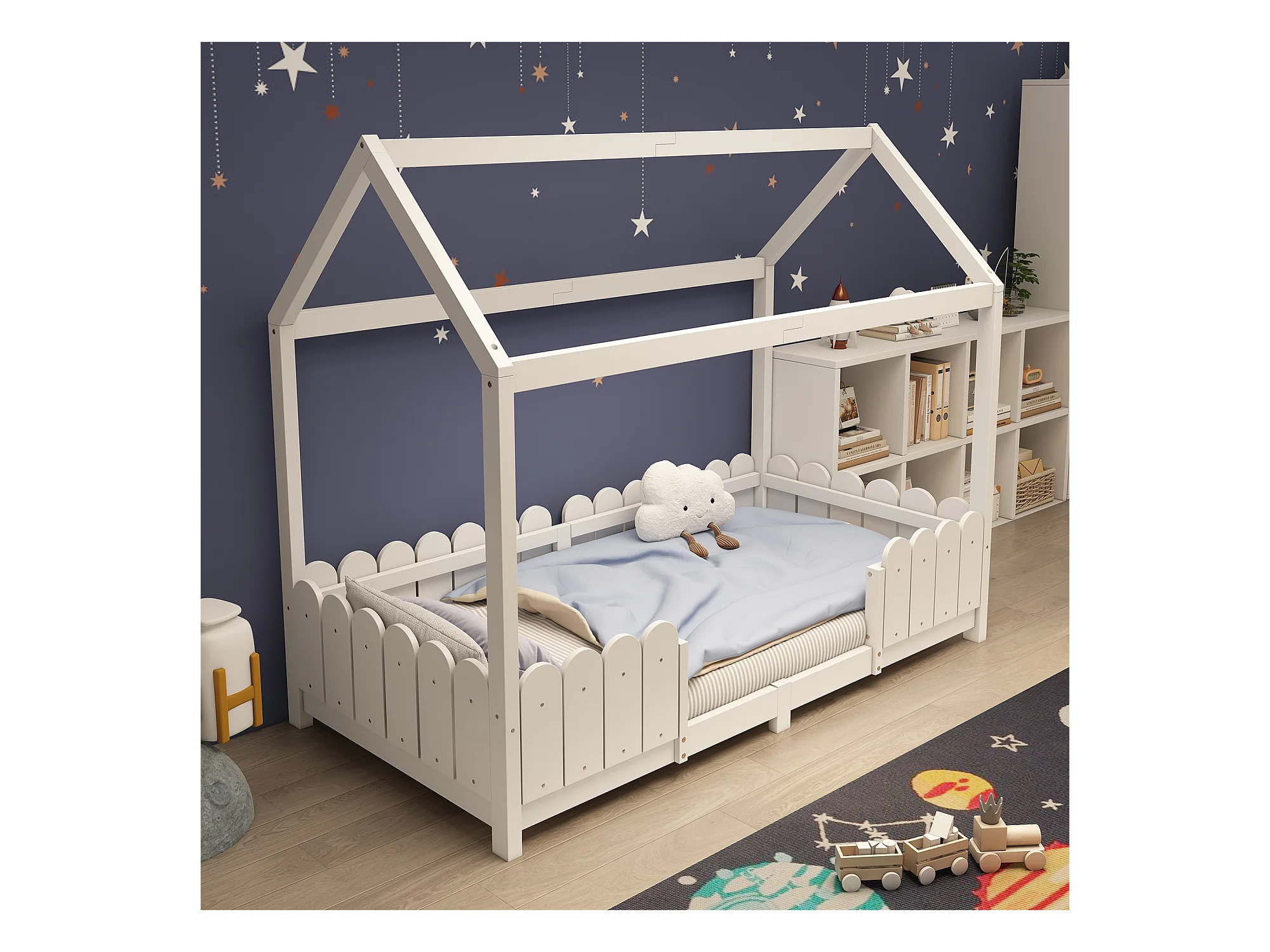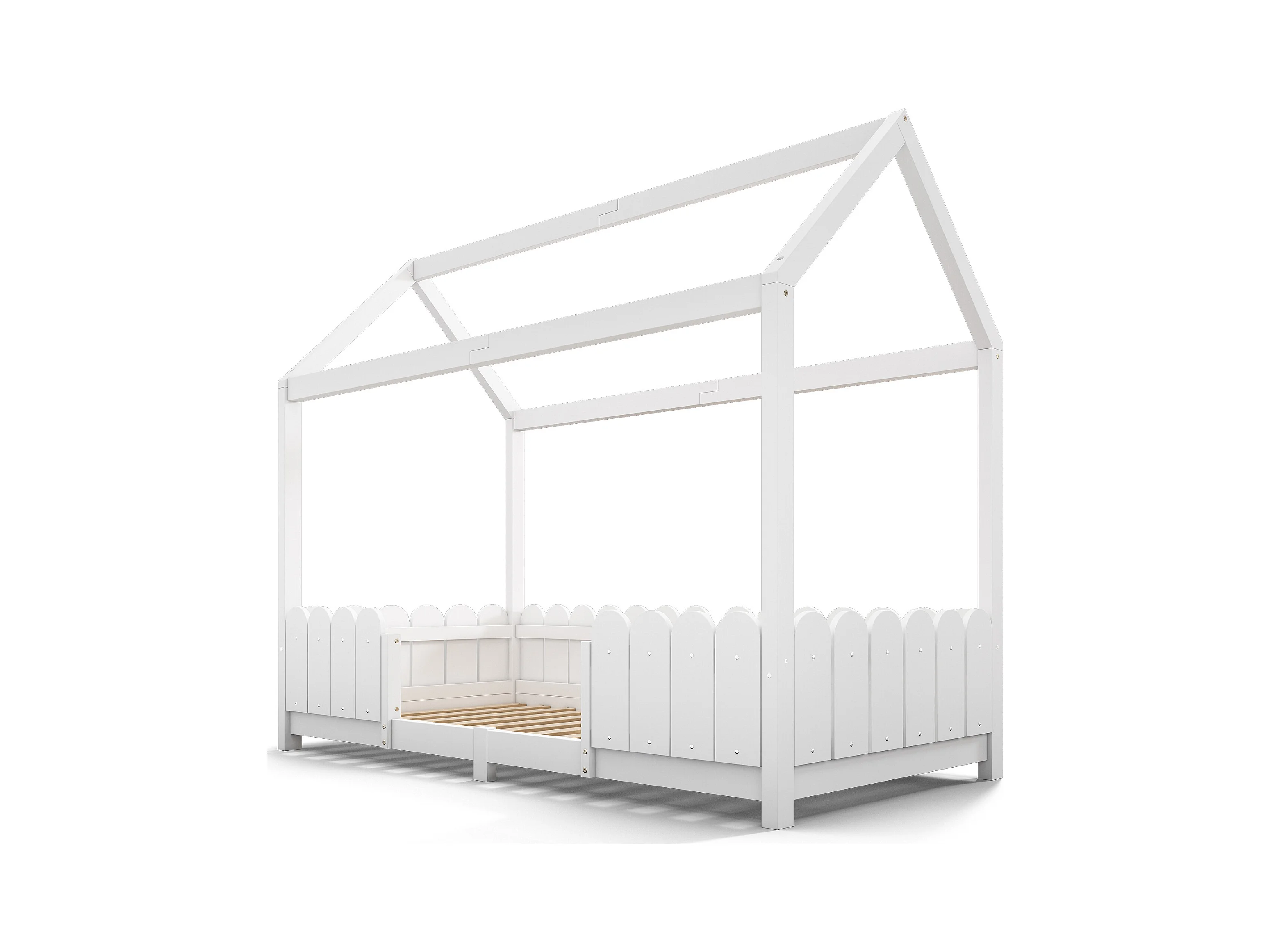 Lit cabane 90x200 cm - Lit enfant avec protection antichute et sommier à lattes - blanc - sans matelas