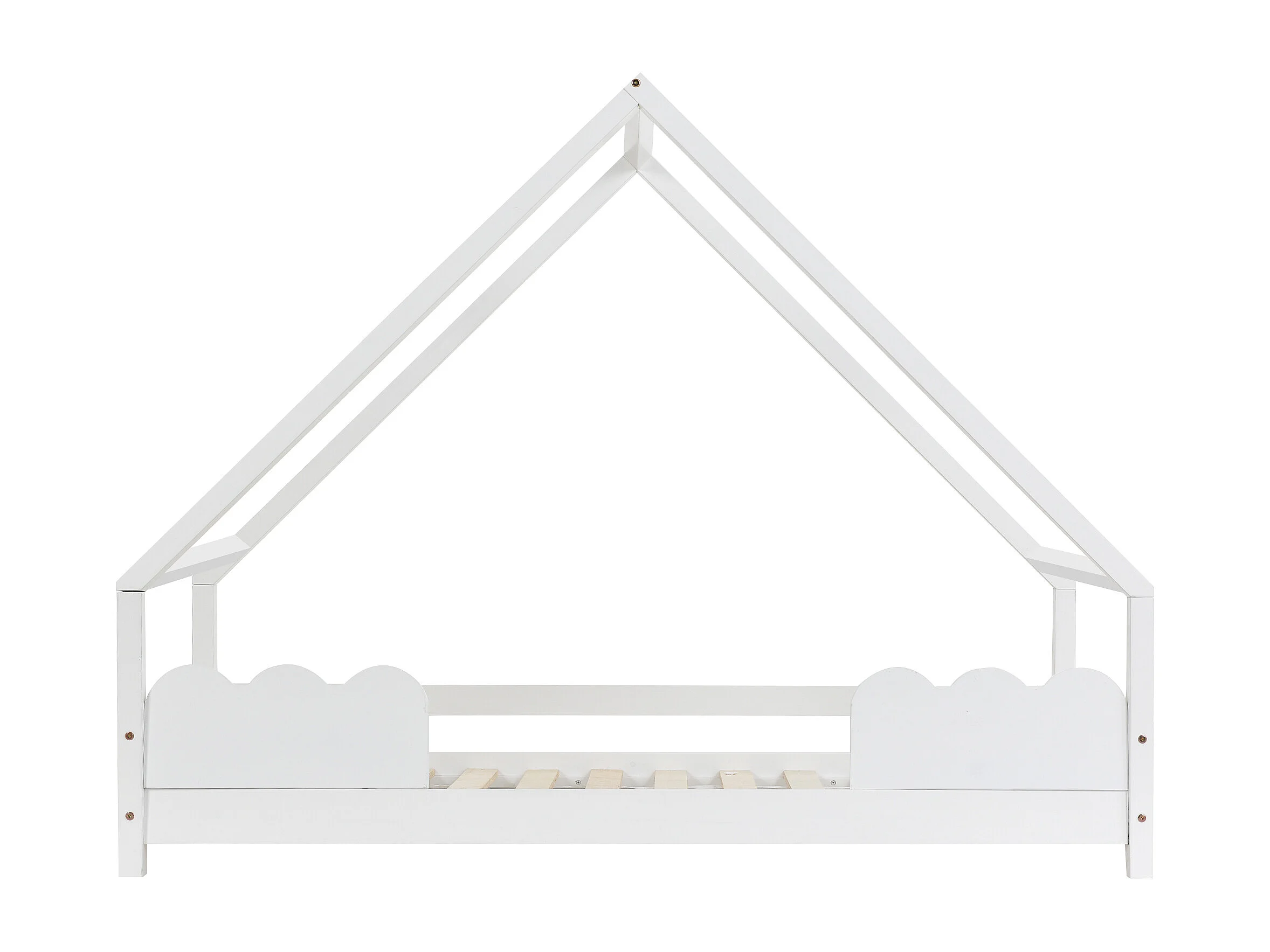 Lit cabane 90x200 cm, lit enfant avec protection antichute et sommier à lattes - blanc (sans matelas)