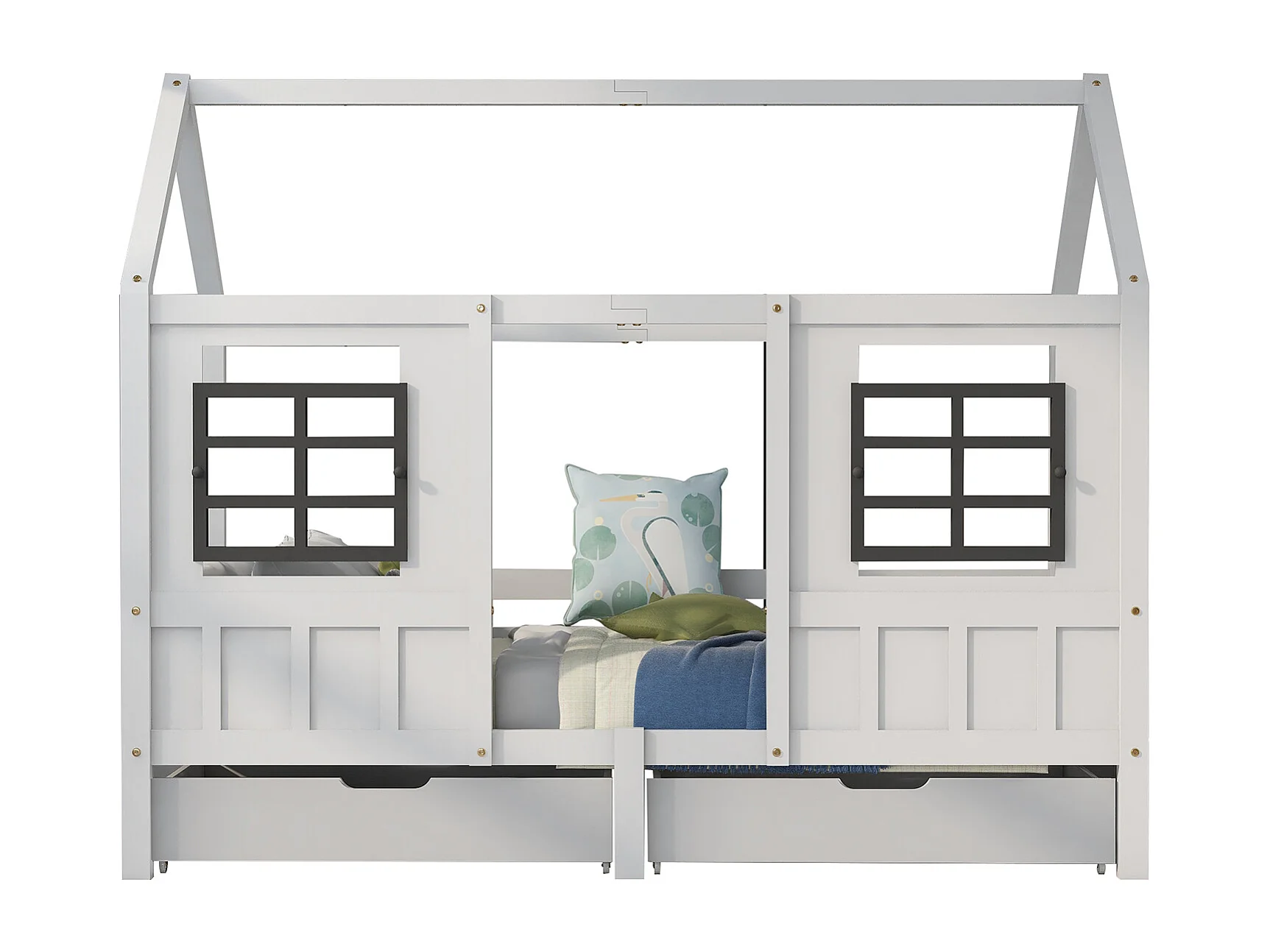 Lit cabane avec 2 tiroirs - avec 2 fenêtres blanc (200 x 90 cm) - Sweiko
