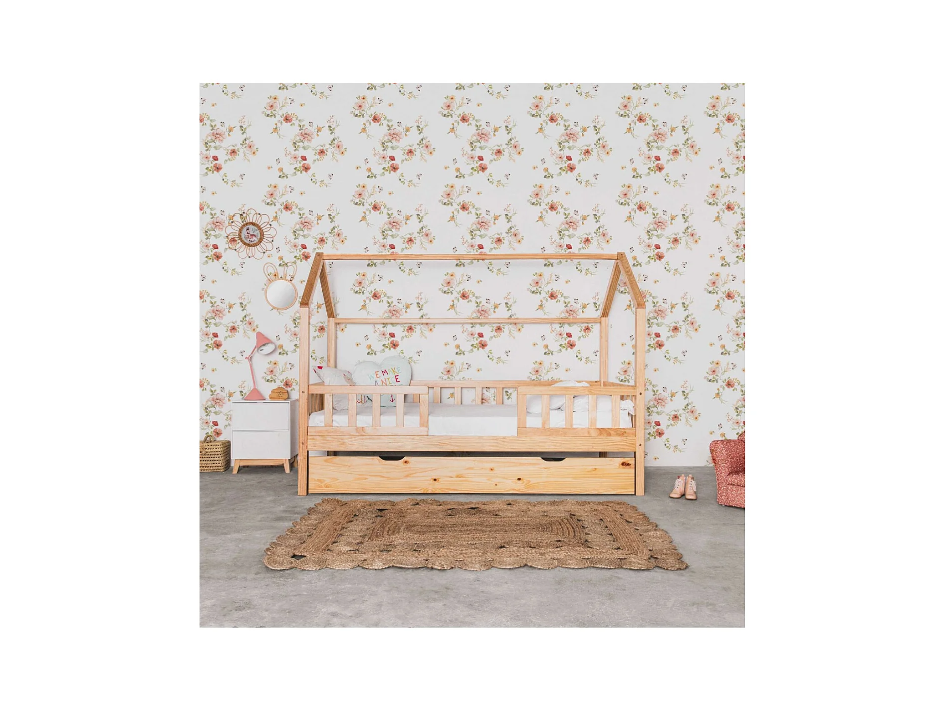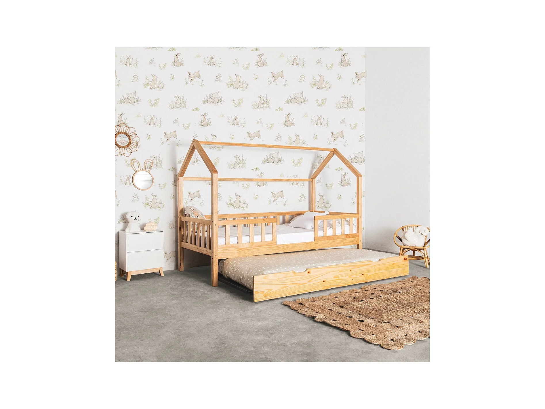Lit cabane avec barrièrre + lit tiroir bois pin 90x190cm