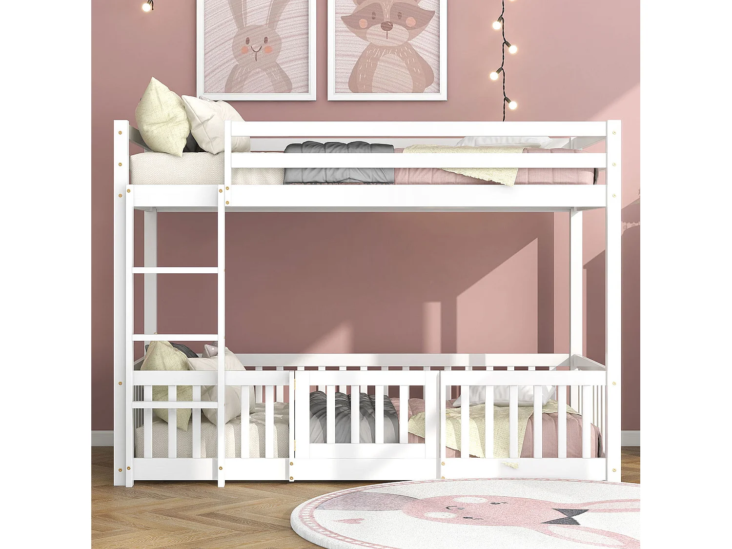 Lit cabane avec escalier à angle droit lit - blanc (200x90 cm) - Sweiko