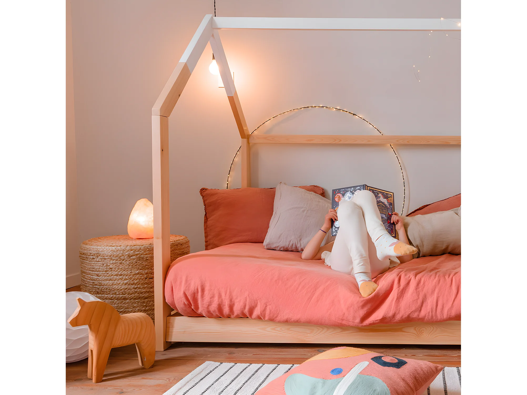 Lit cabane enfant Céleste bois massif et barrière bois 90x190 cm