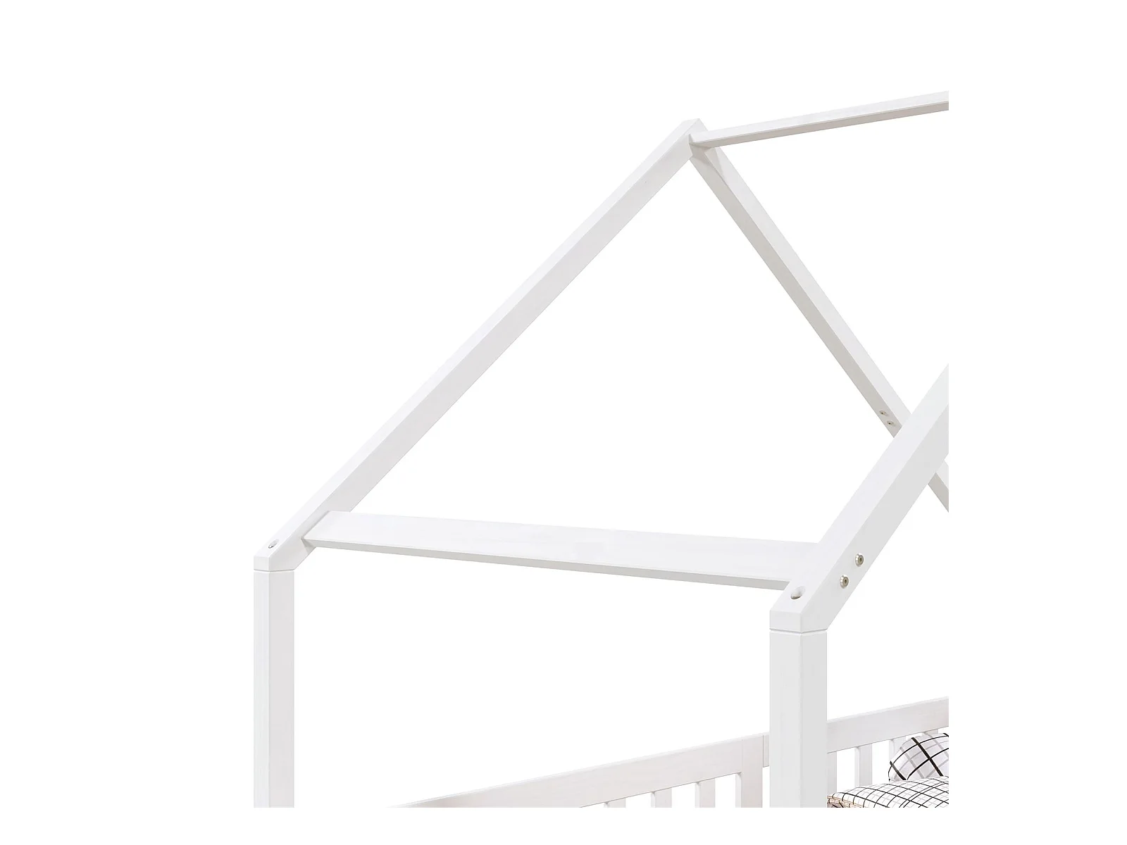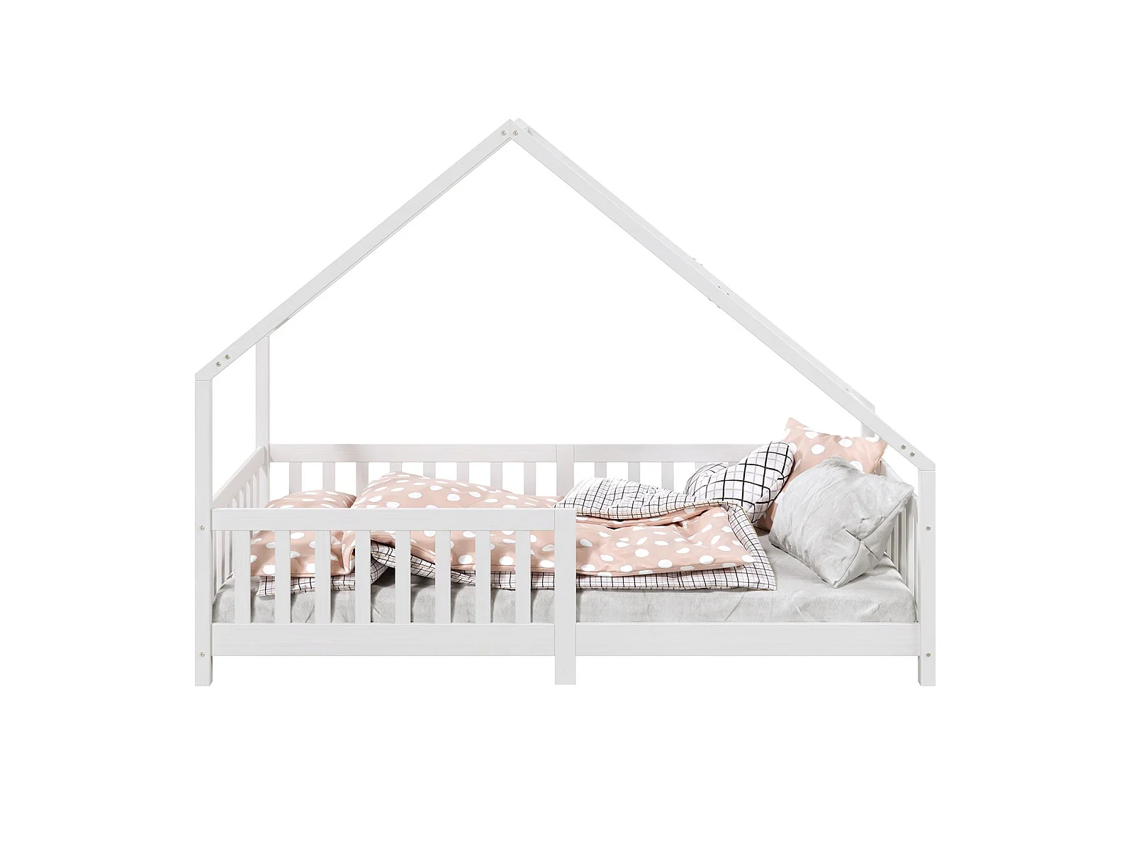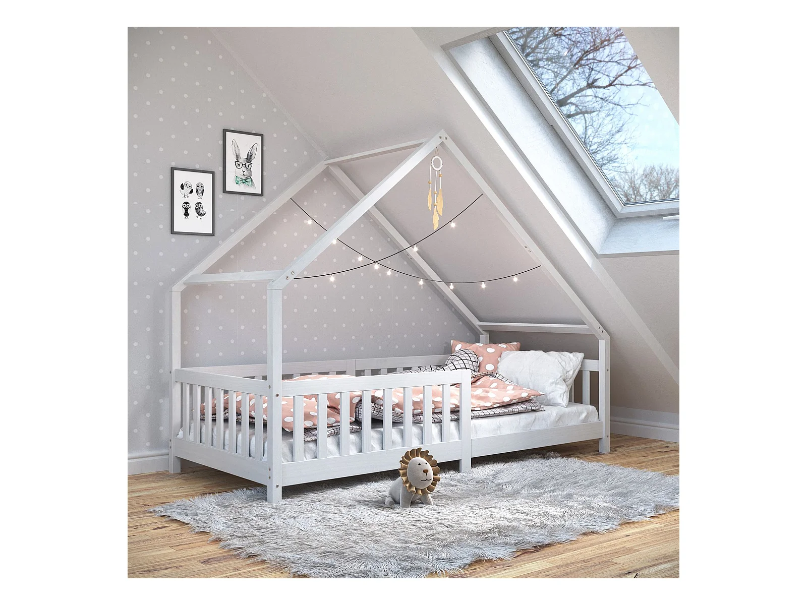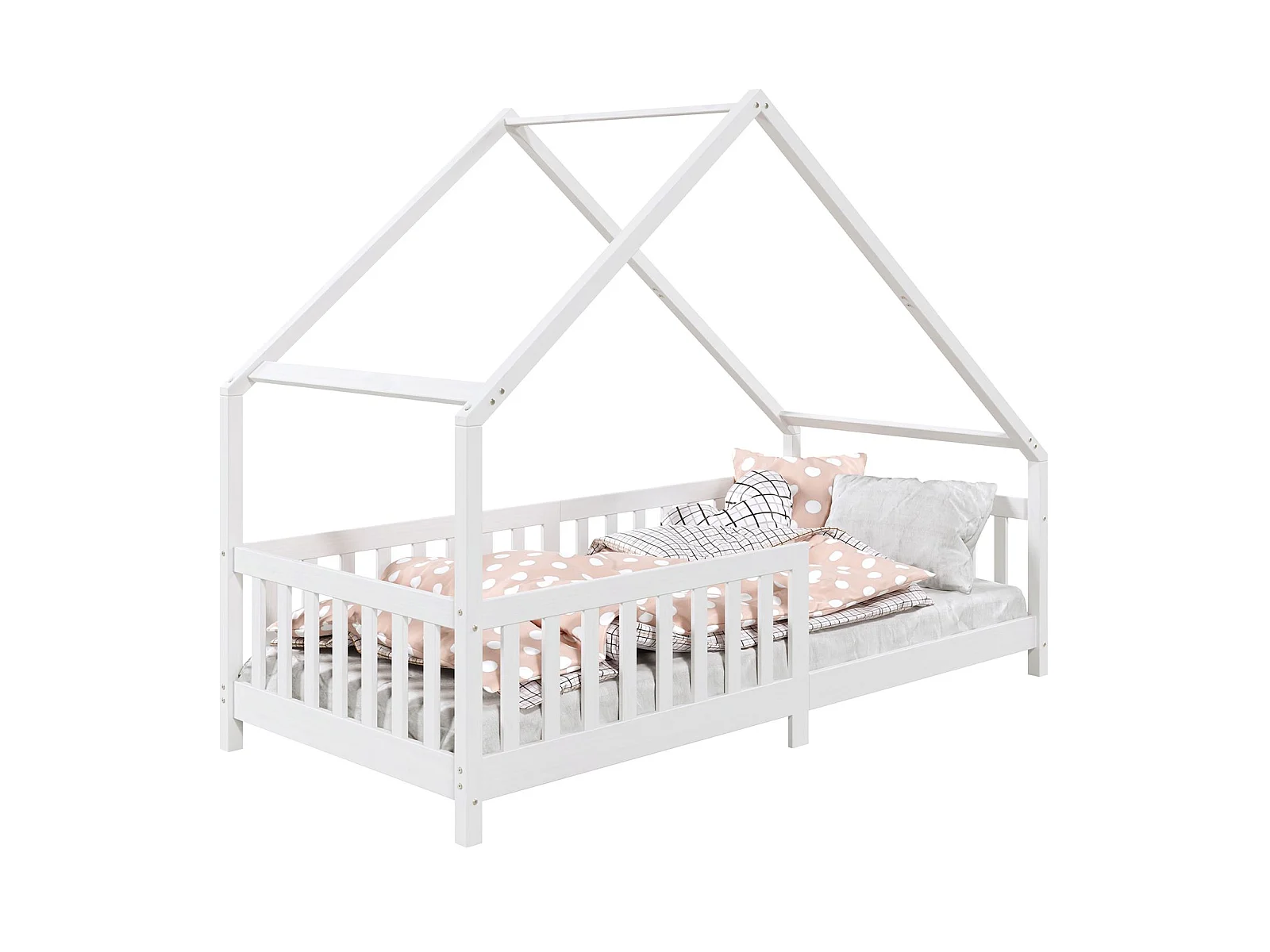 Lit cabane CORA lit enfant simple montessori asymétrique en bois 90 x 200 cm en pin massif lasuré blanc