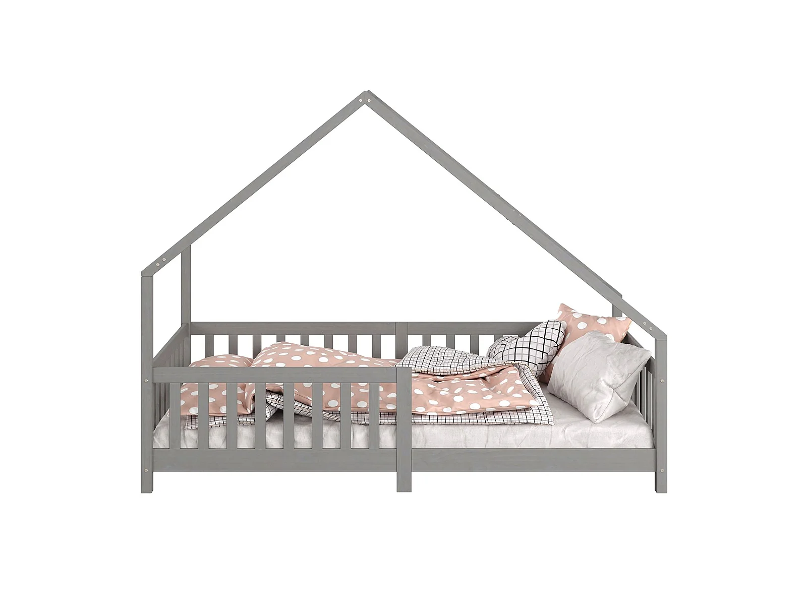 Lit cabane CORA lit enfant simple montessori asymétrique en bois 90 x 200 cm en pin massif lasuré gris