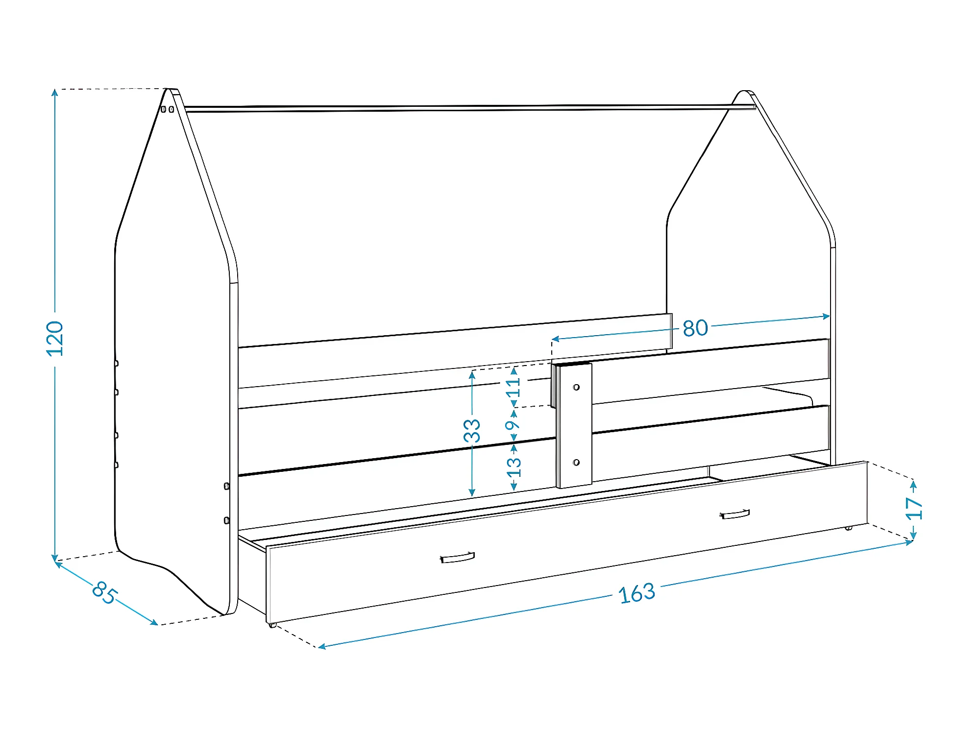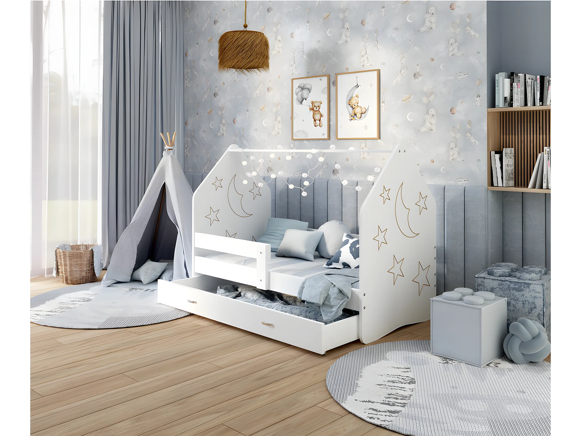 Lit Cabane DAILY FREZ 80x160 Blanc - lune Livré avec le sommiers et tiroir.