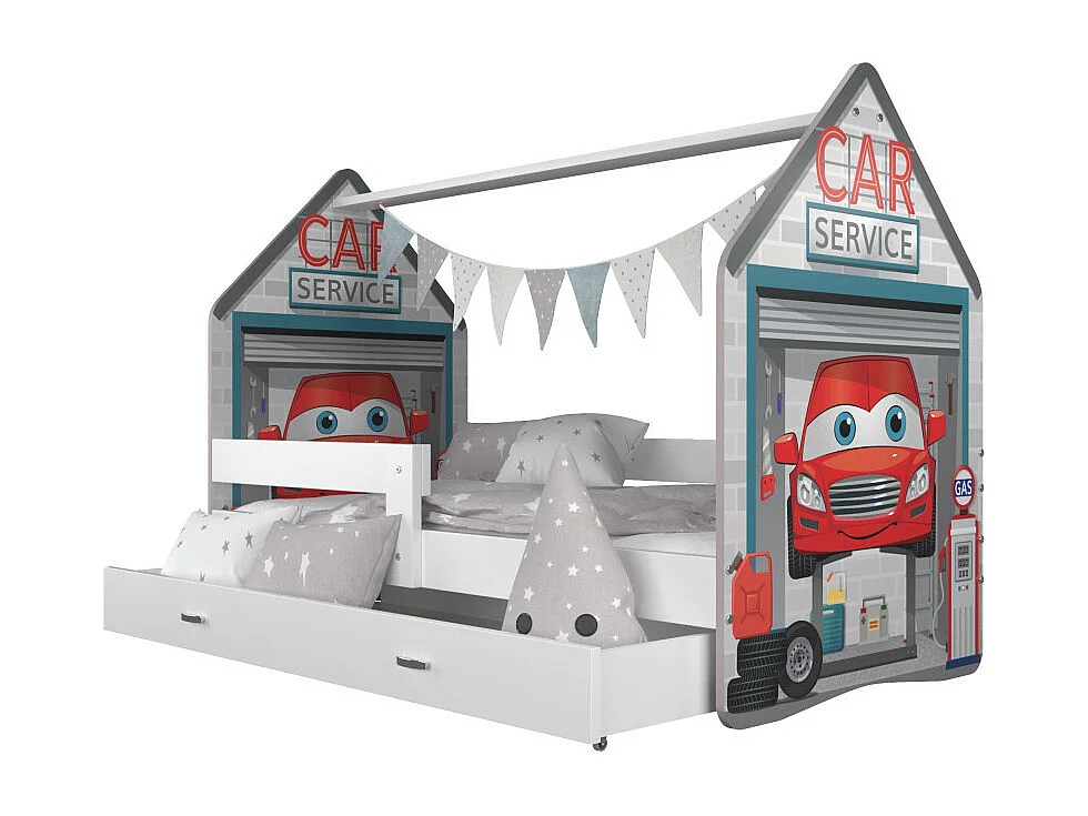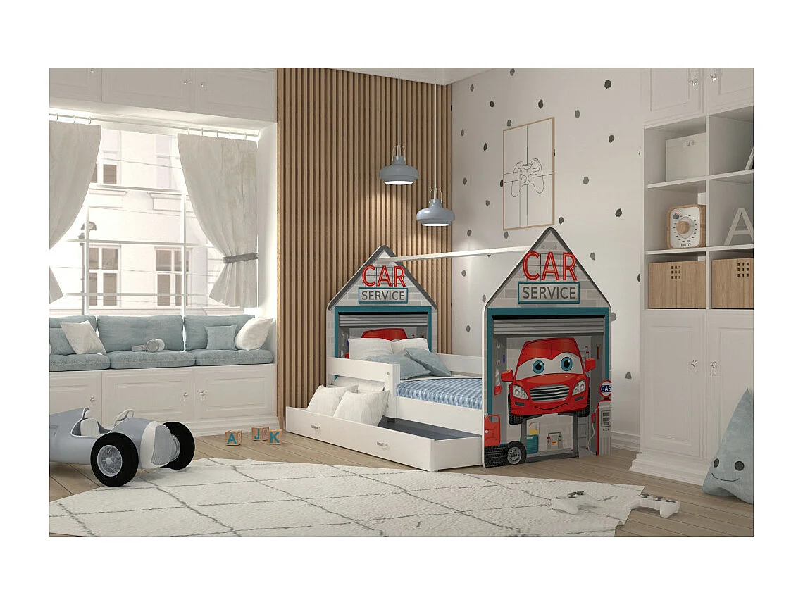Lit Cabane DAILY 80x160 Blanc - Garage Livré avec le sommiers et tiroir.