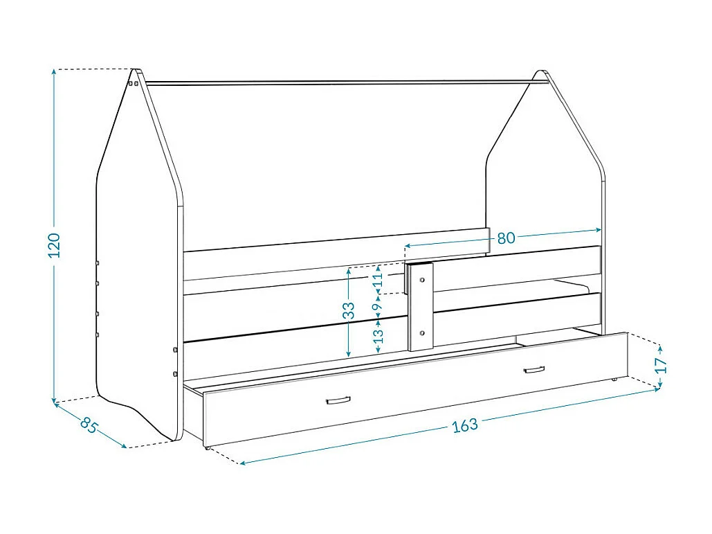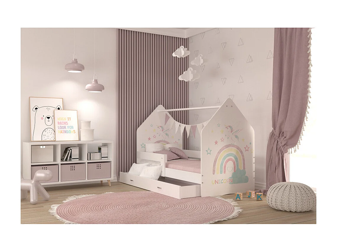 Lit Cabane DAILY 80x160 Blanc - Licorne Livré avec le sommiers et tiroir.