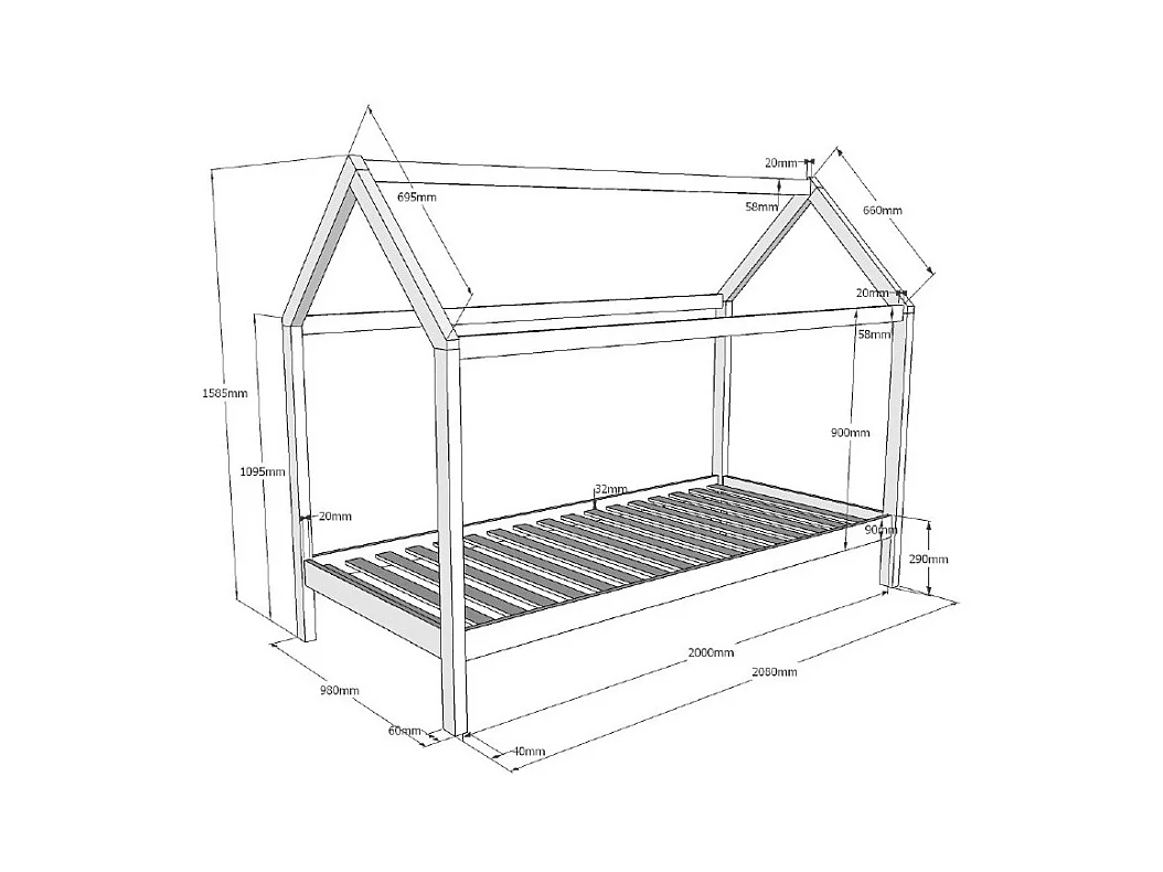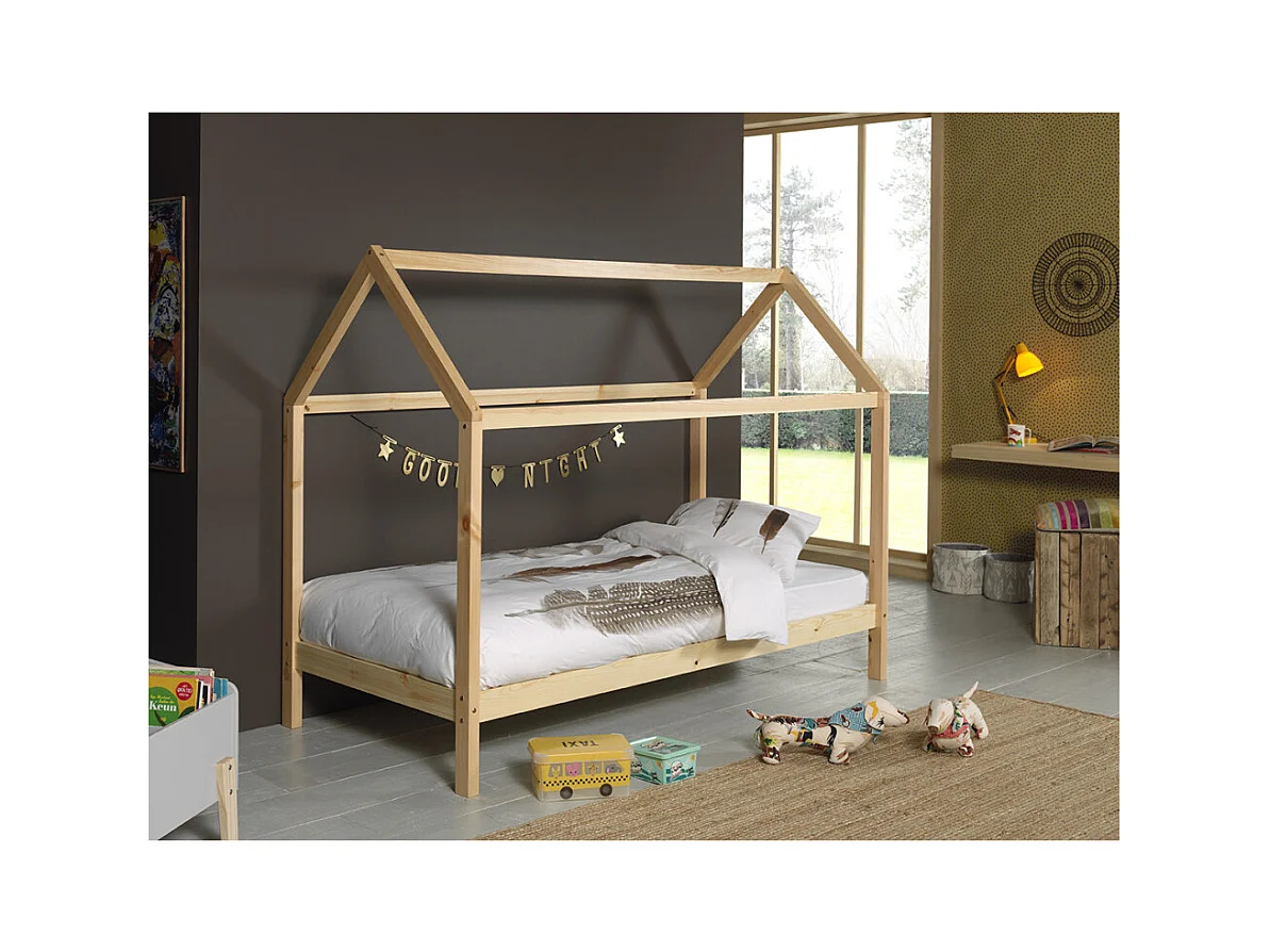 Lit Enfant Cabane & Tiroir "Dallas" 90x200cm Naturel