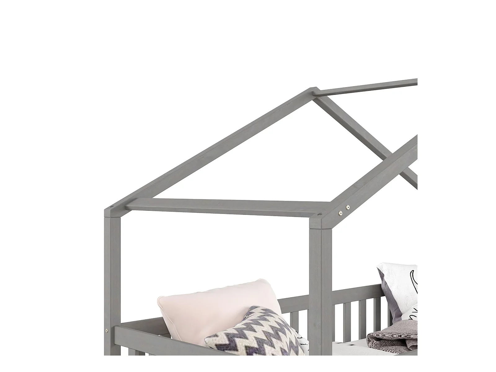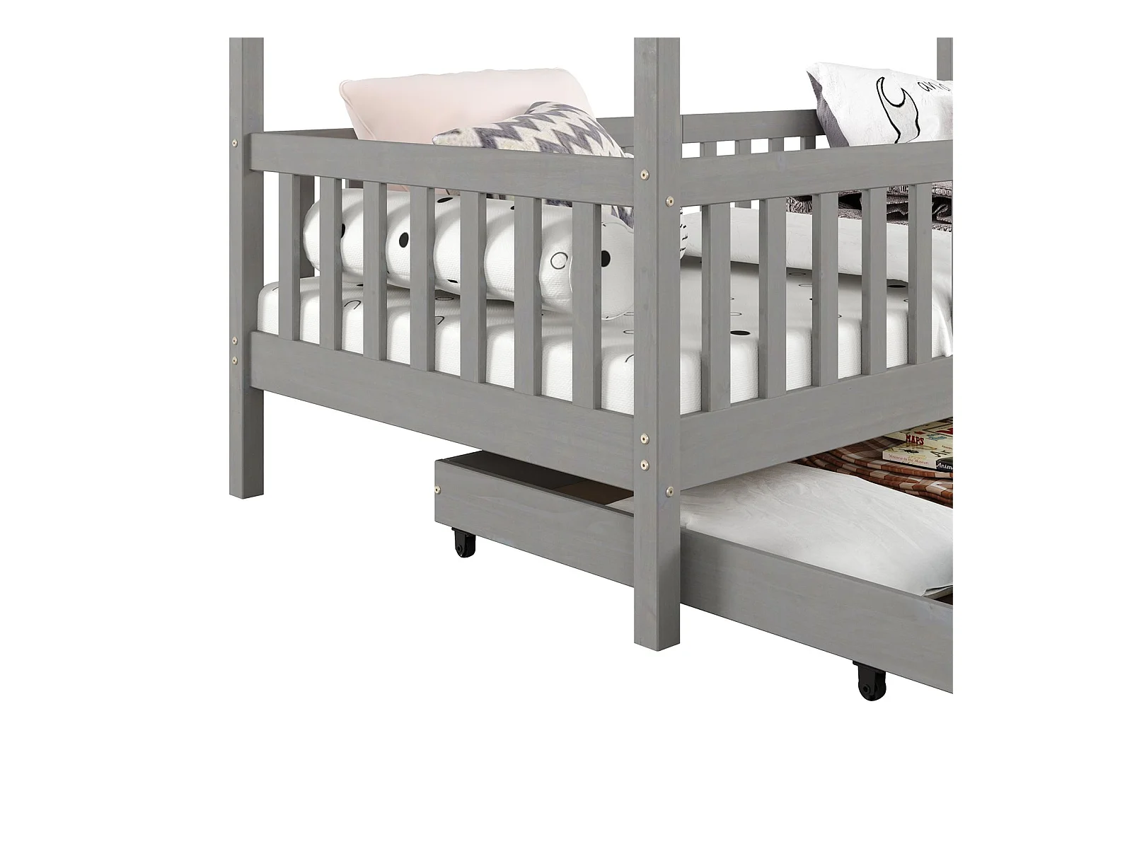 Lit cabane ELEA lit enfant simple montessori 90 x 200 cm, avec 2 tiroirs de rangement, en pin massif lasuré gris