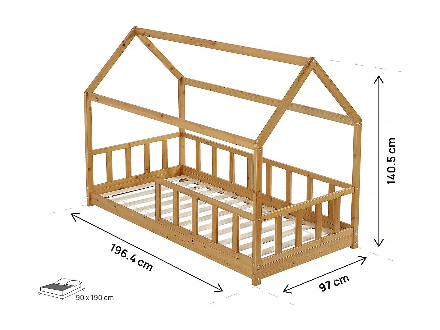 Lit cabane en bois pour enfant "Mila" - 90 x 190 cm - Marron