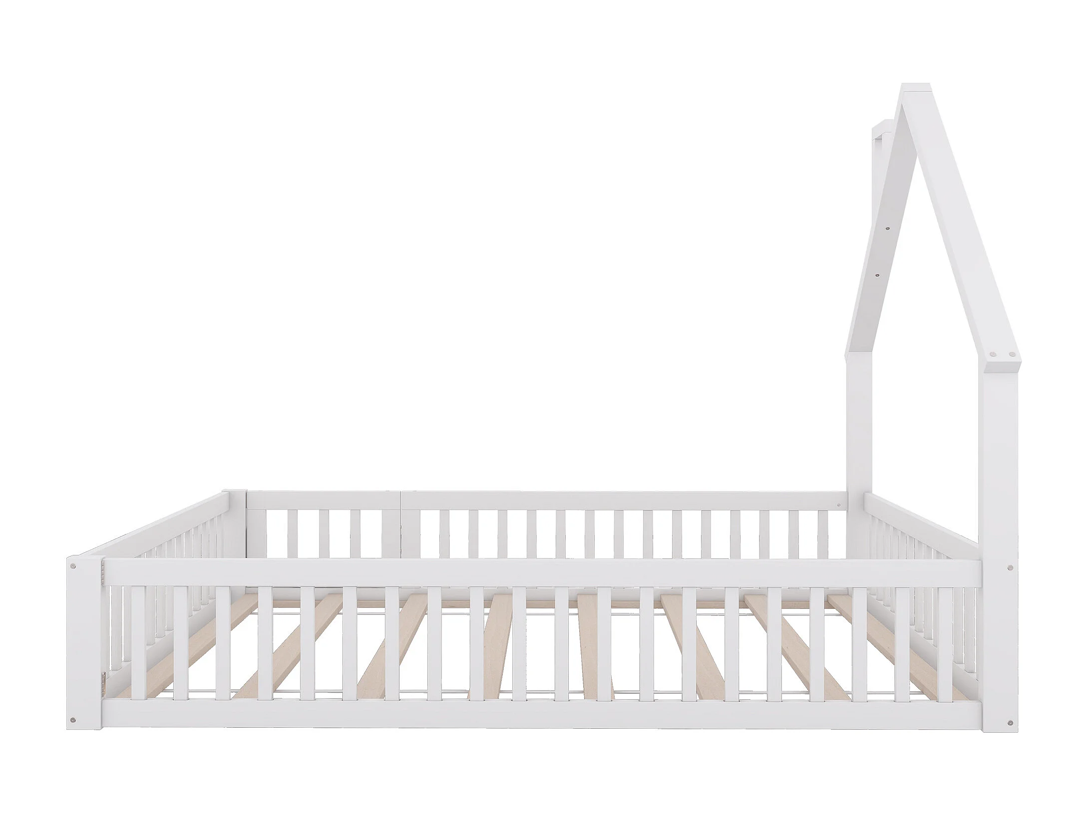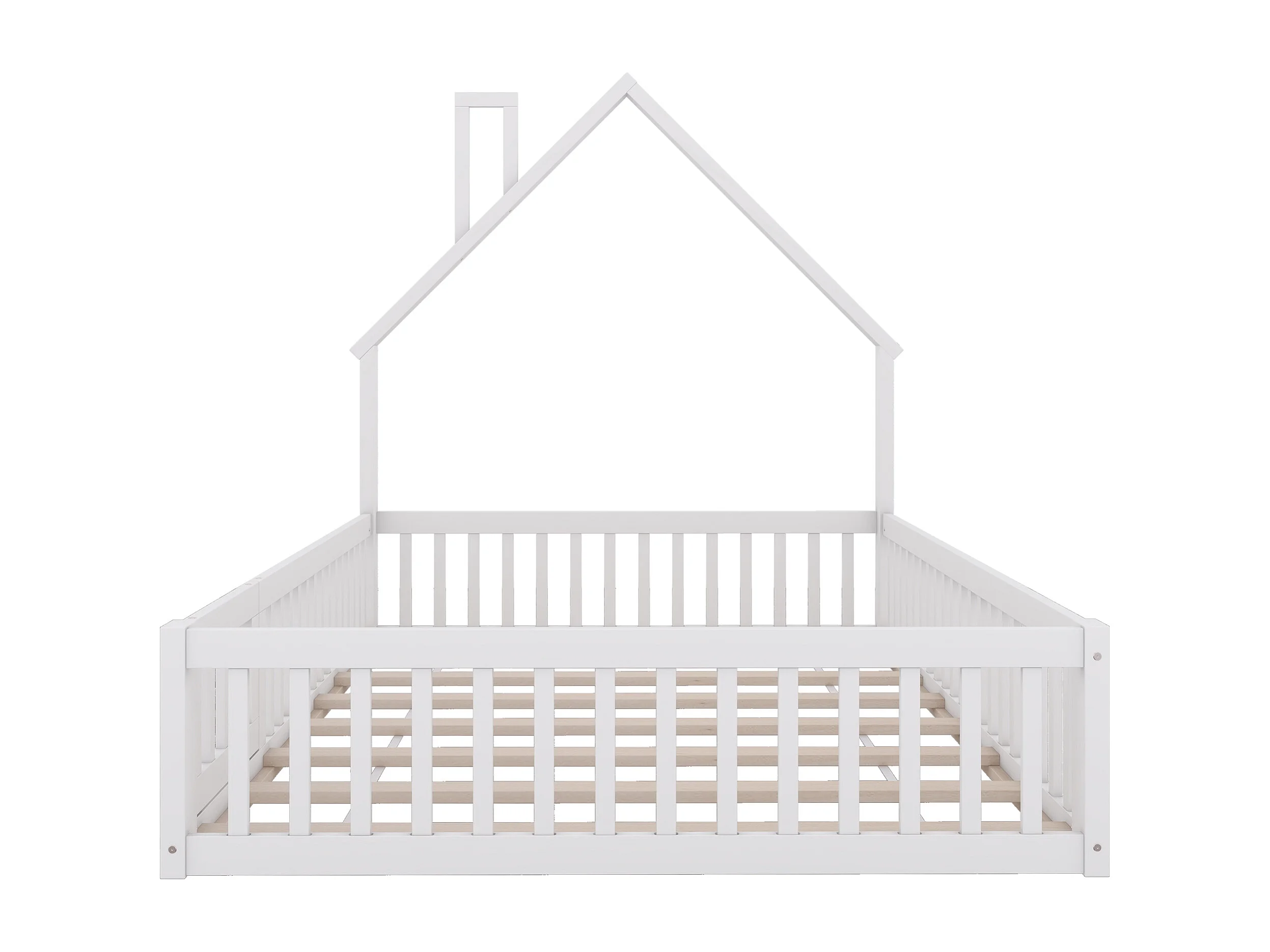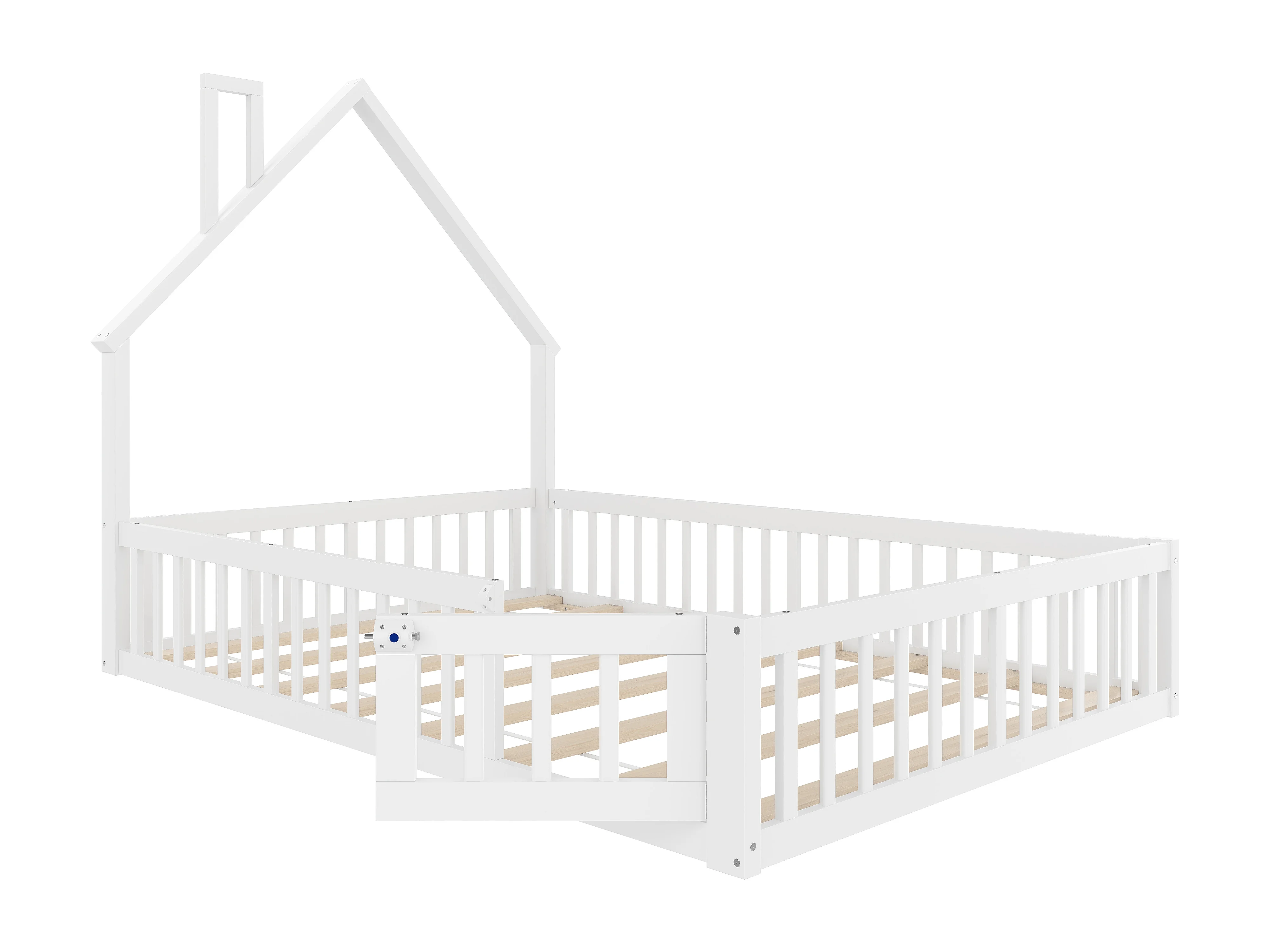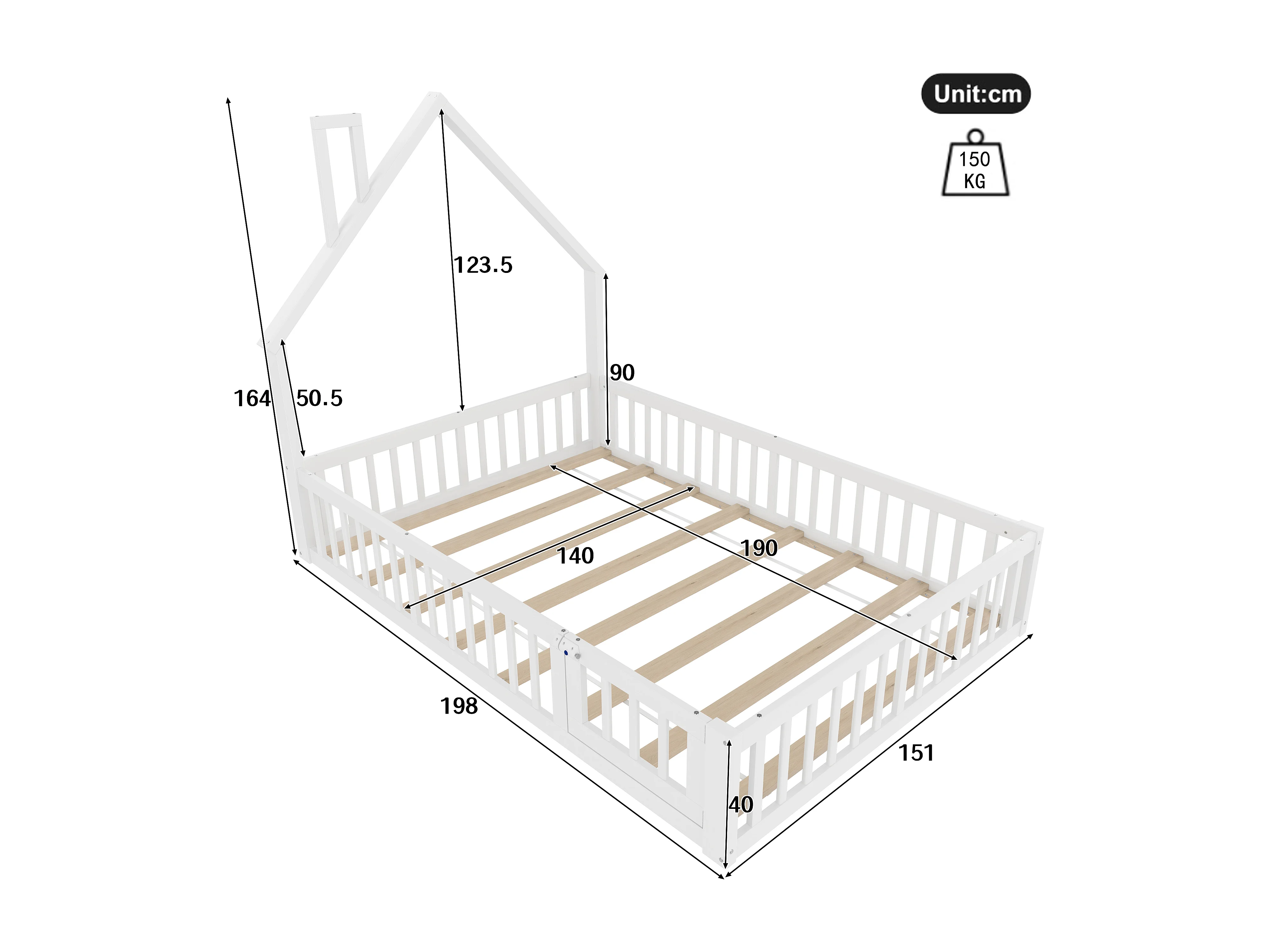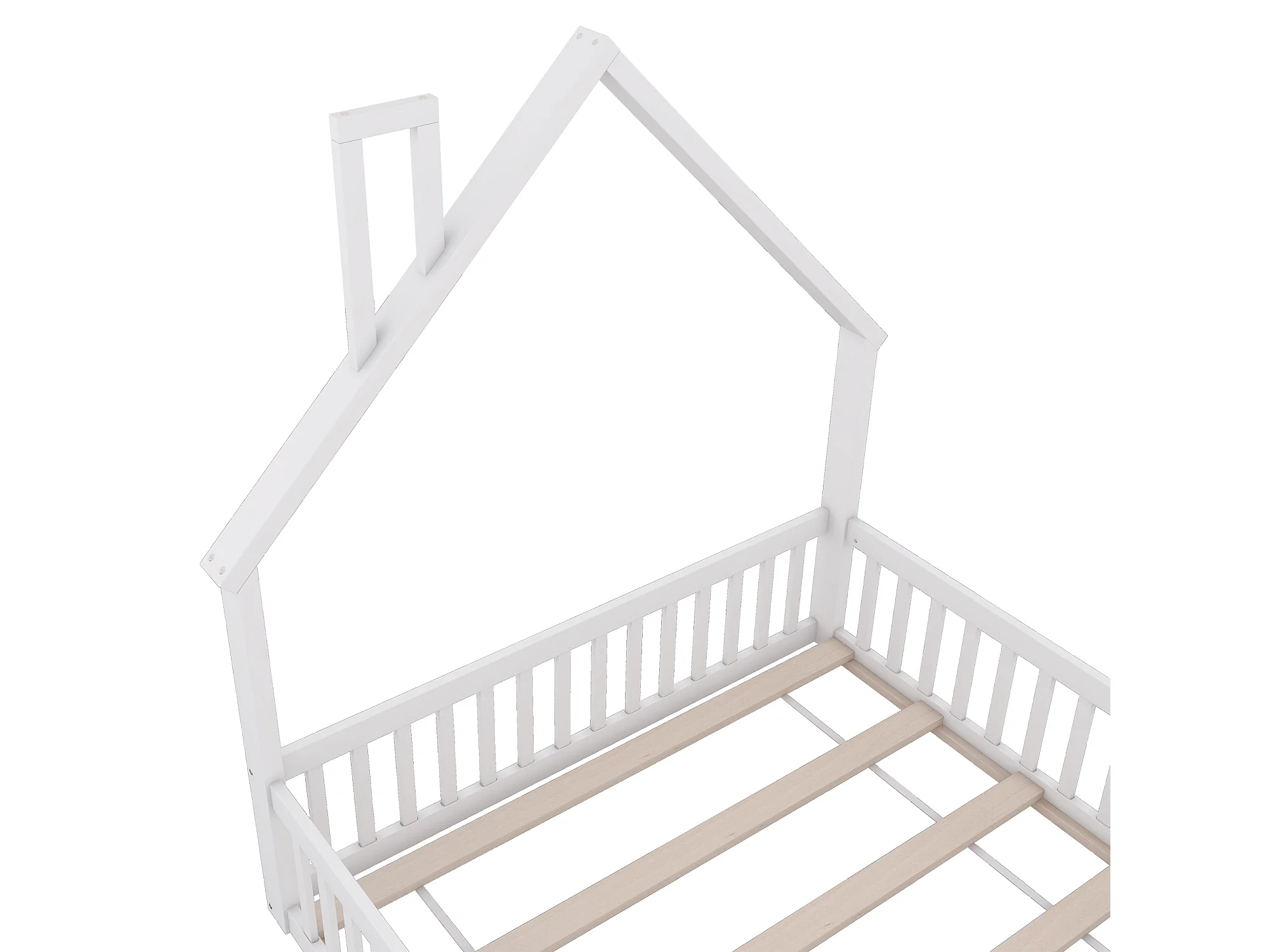 Lit cabane enfant 140 x 190 cm en forme de cheminée - Bois en pin et MDF - Blanc