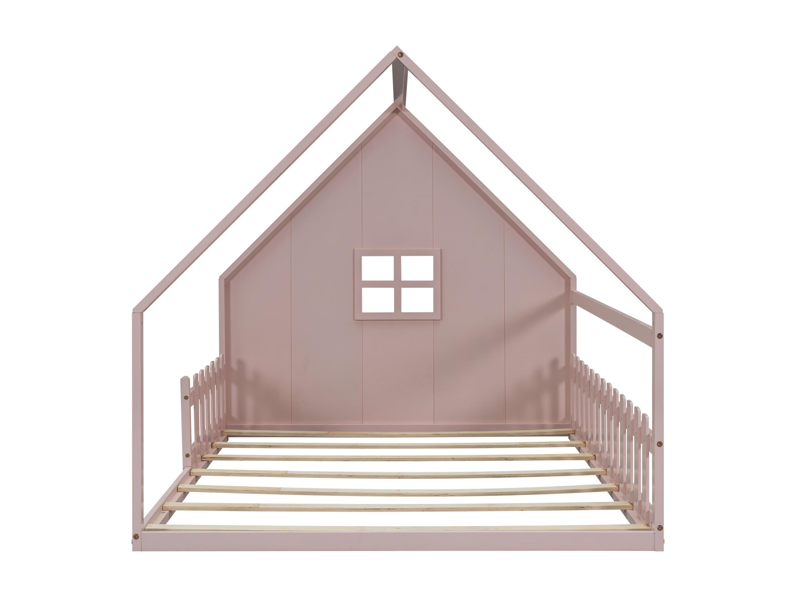 Lit cabane 140x200 cm avec sommier à lattes - avec barrière de protection - Pin - rose (sans matelas)