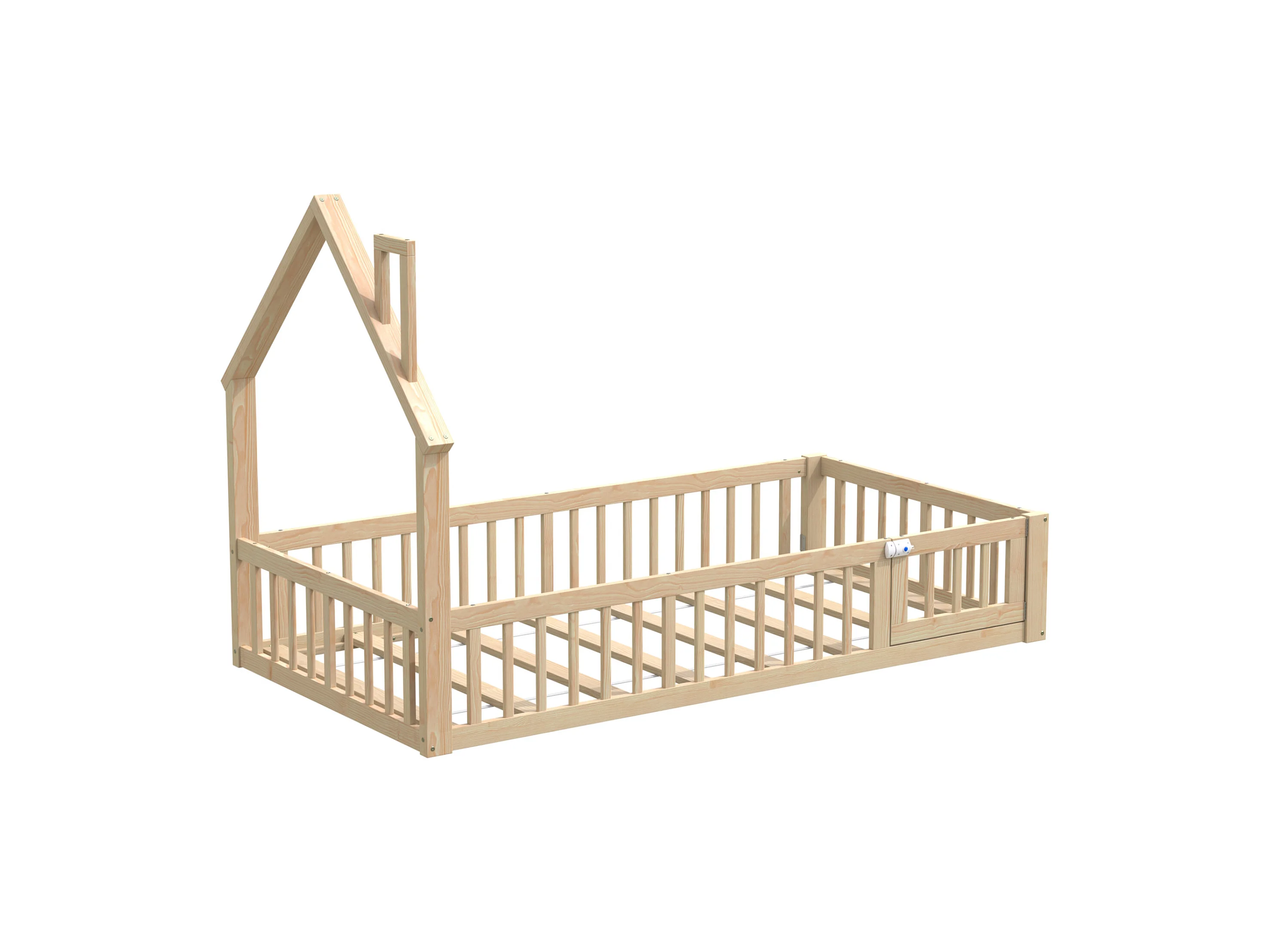 Lit cabane enfant 90 x 200 cm en forme de cheminée - Bois en pin et MDF - Naturel clair