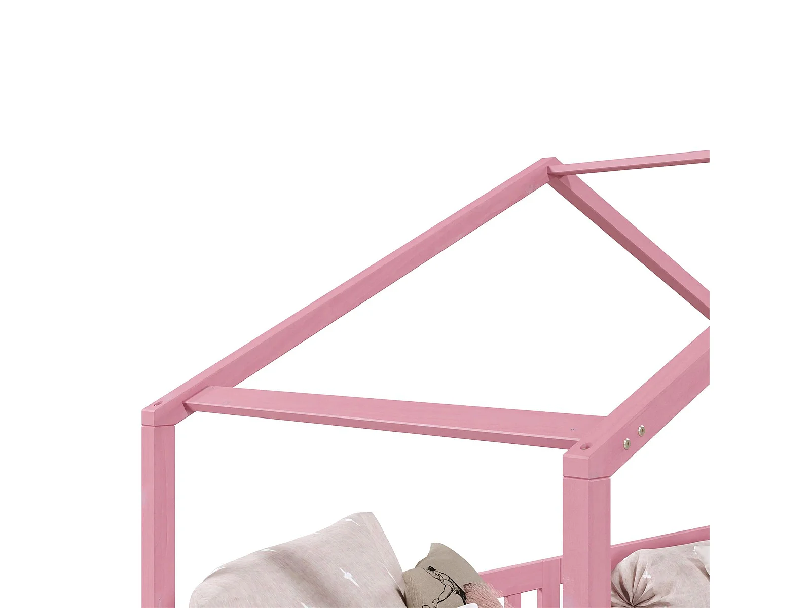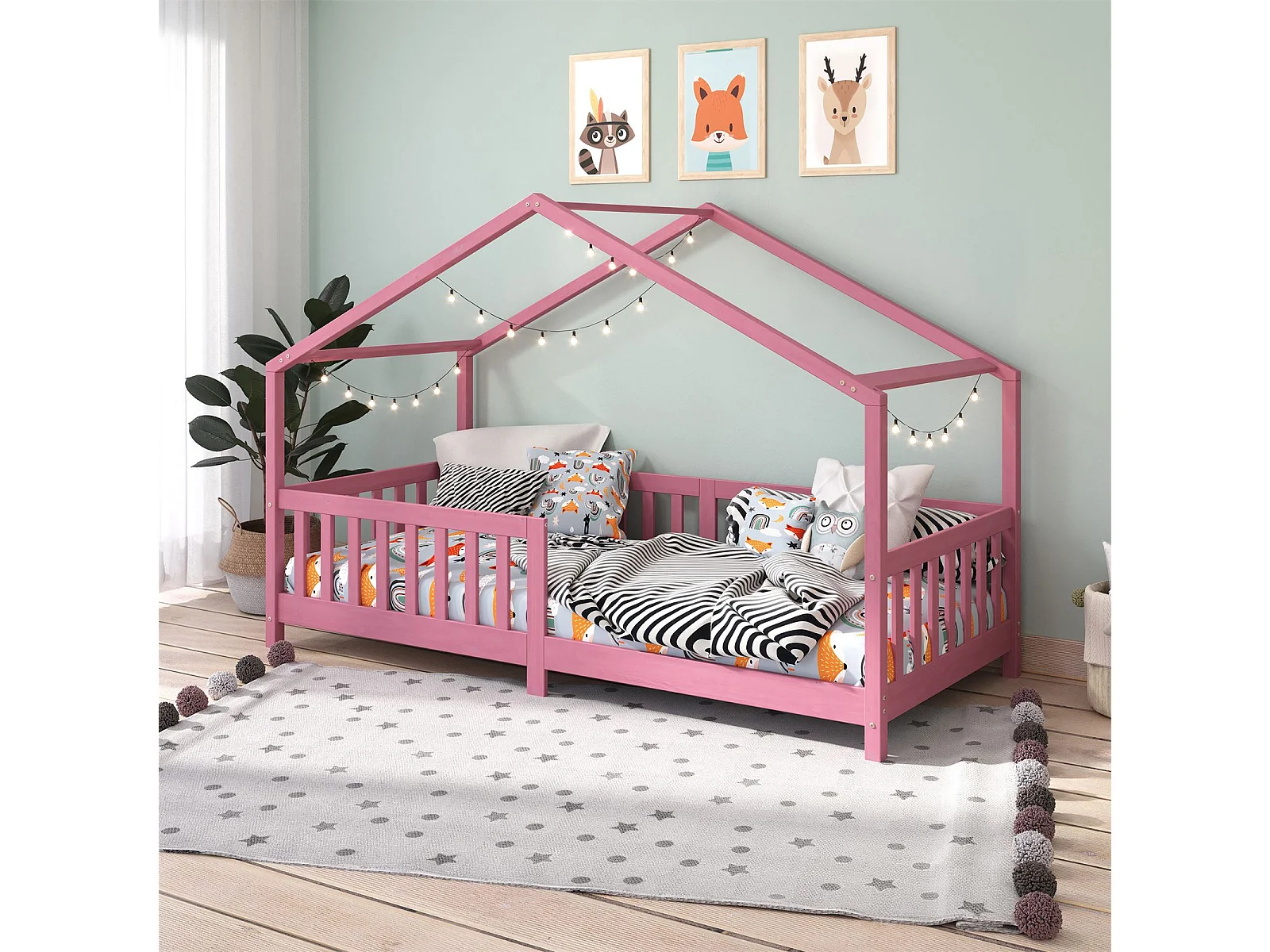 Lit cabane enfant 90x190 cm LISAN lit Simple montessori avec Barrières de Protection en Bois Massif lasuré rose