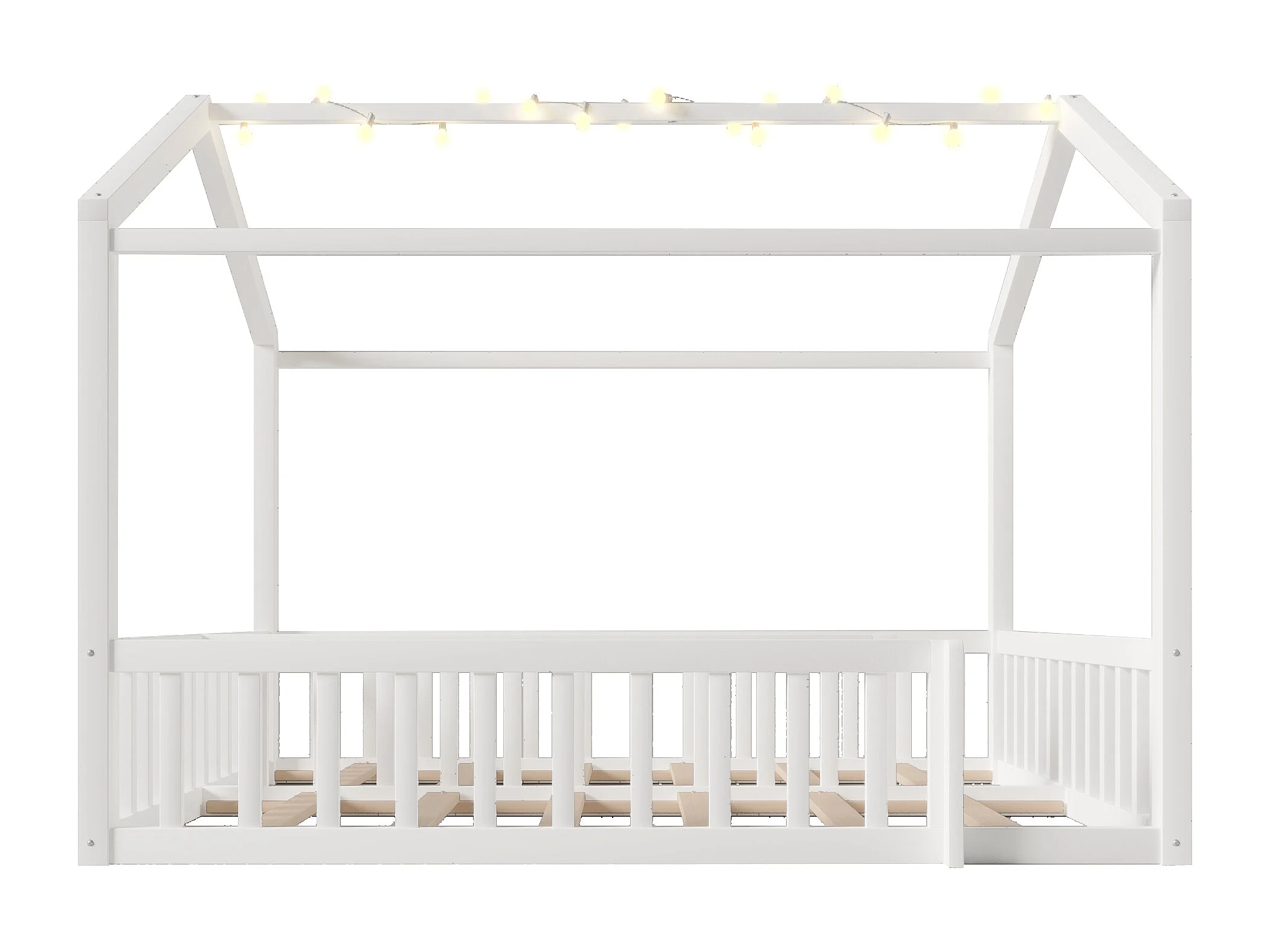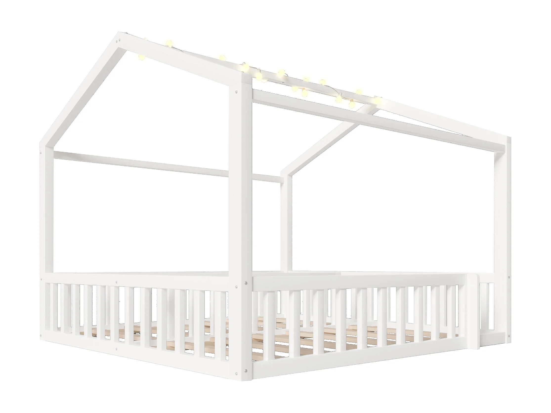 Lit cabane enfant 90x190 cm transformable 180x190 cm avec LED - Blanc