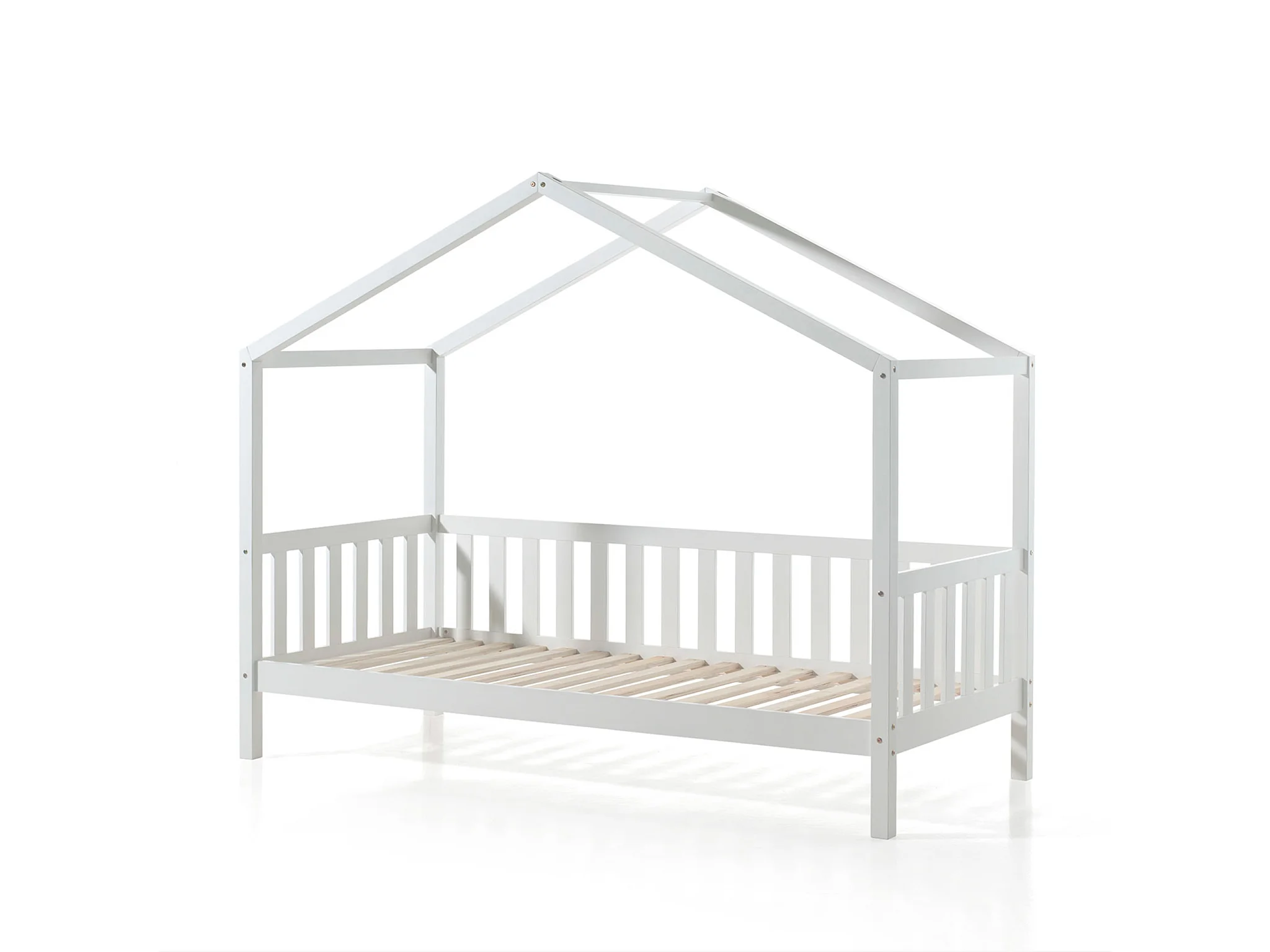 Lit cabane enfant à barreaux en bois massif blanc 90x200 - LT2021