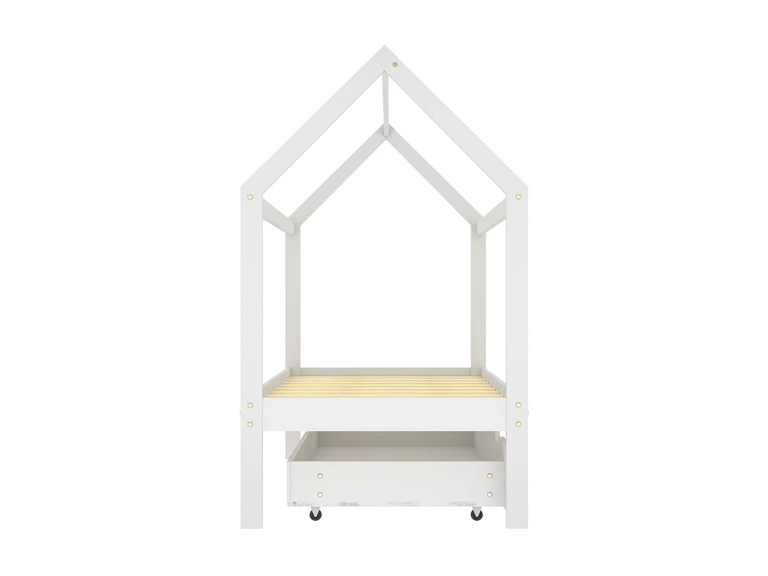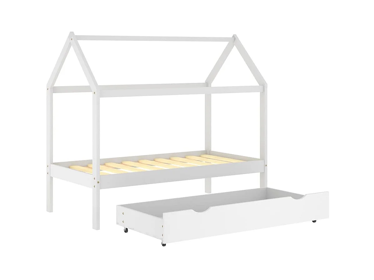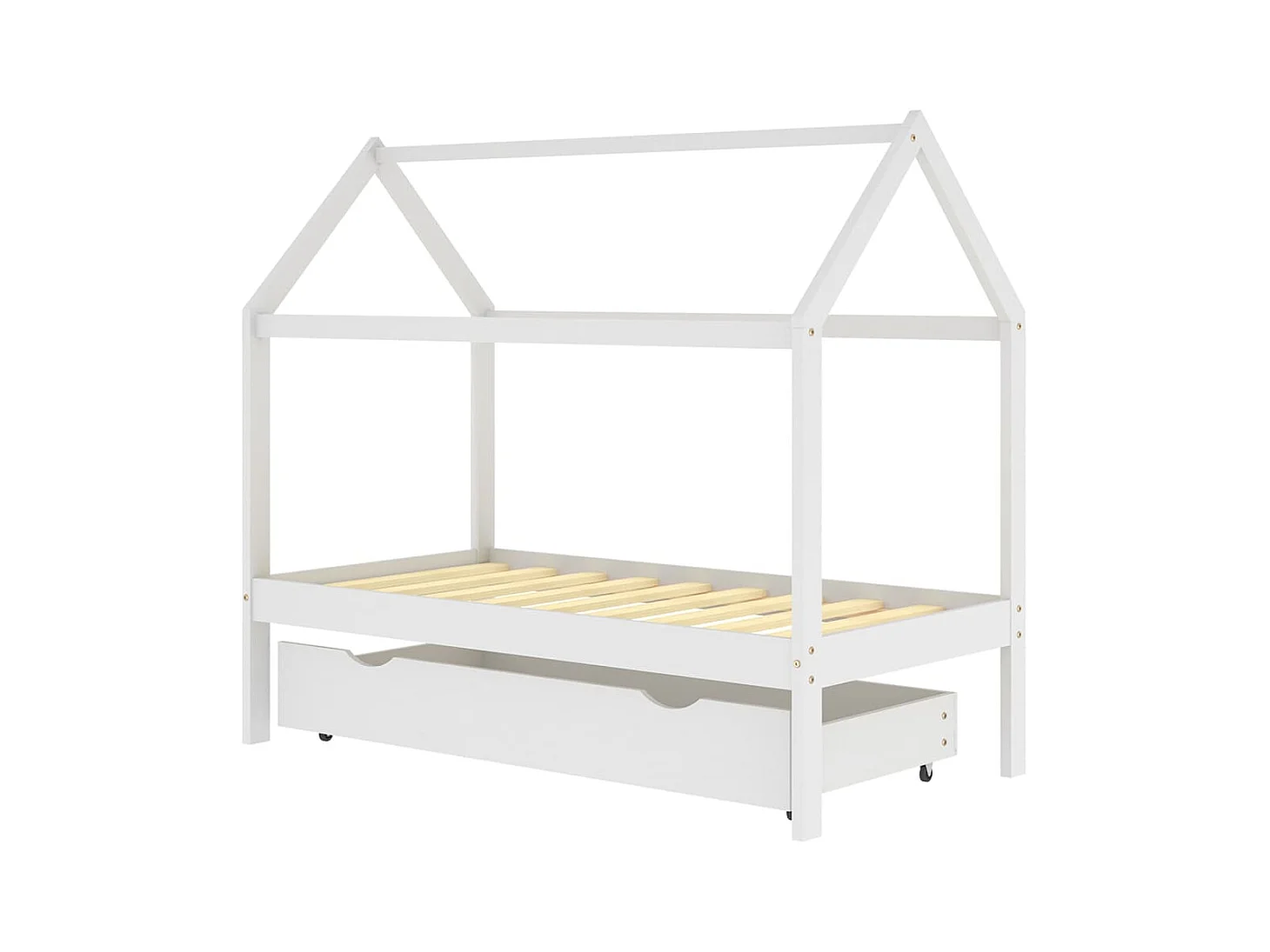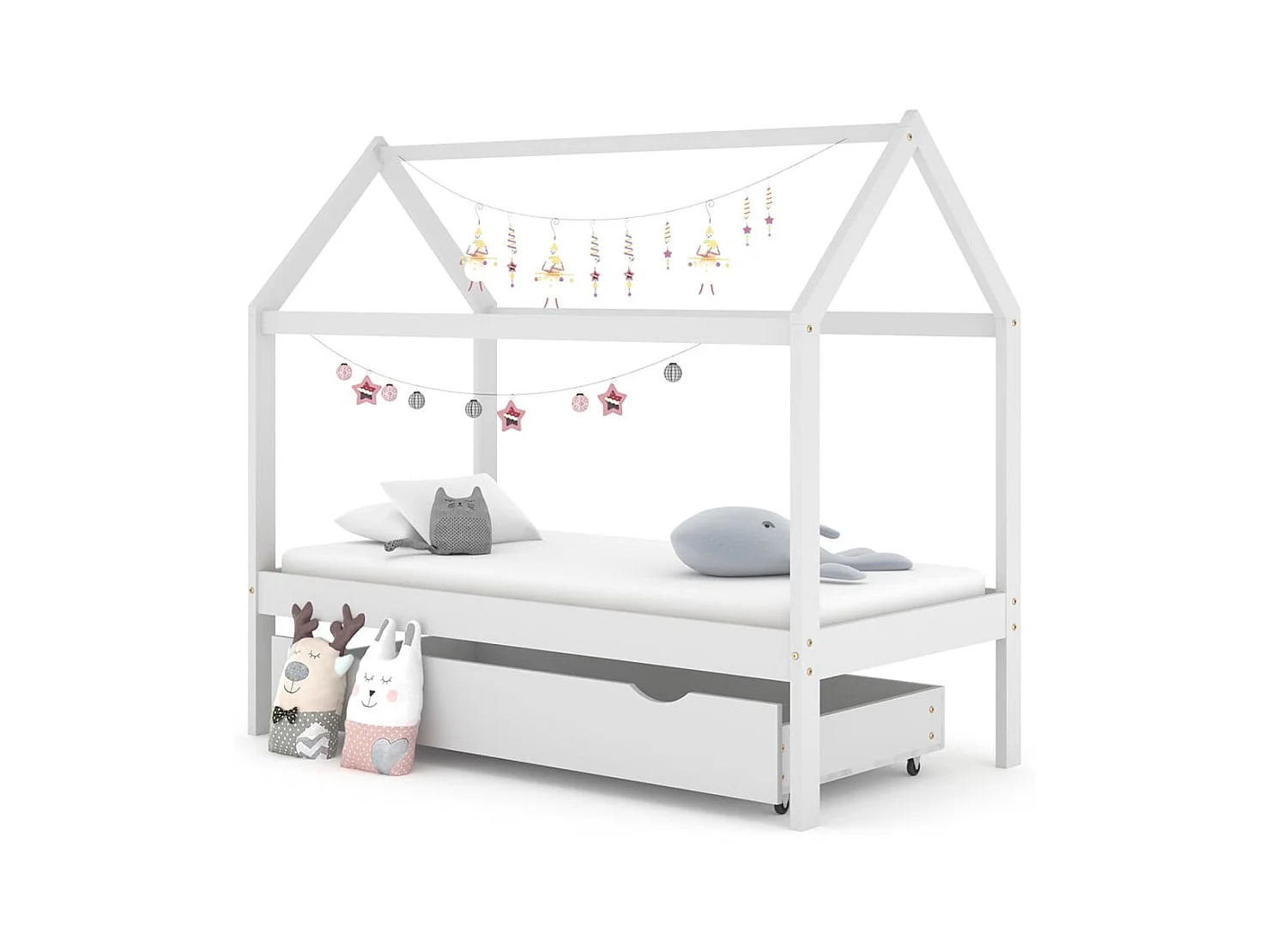 Lit cabane enfant avec un tiroir Blanc Pin massif 80x160