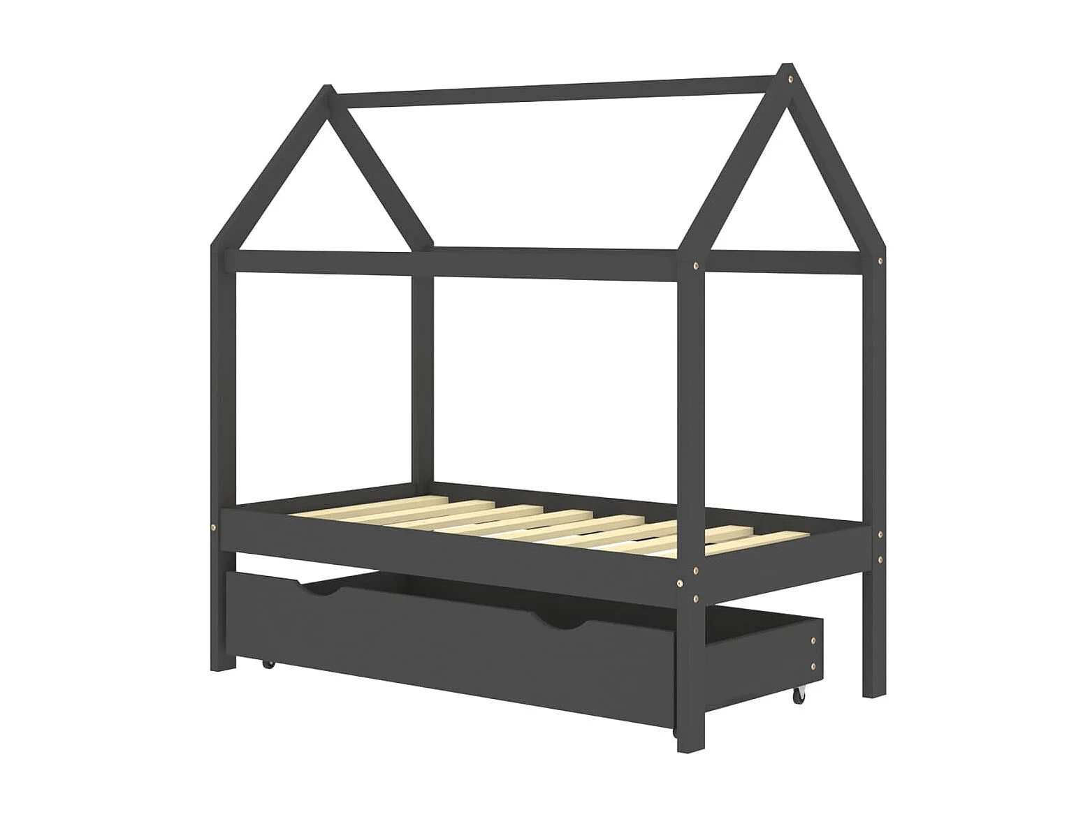 Lit cabane enfant avec un tiroir Gris foncé Pin 70x140