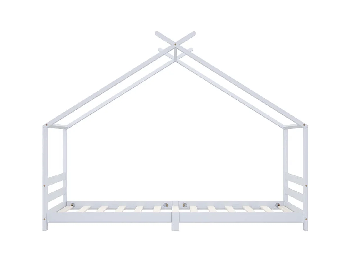 Lit cabane enfant Blanc Bois de pin massif 90x200