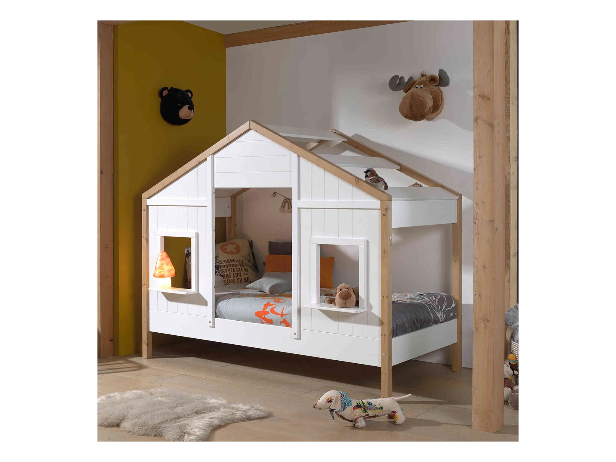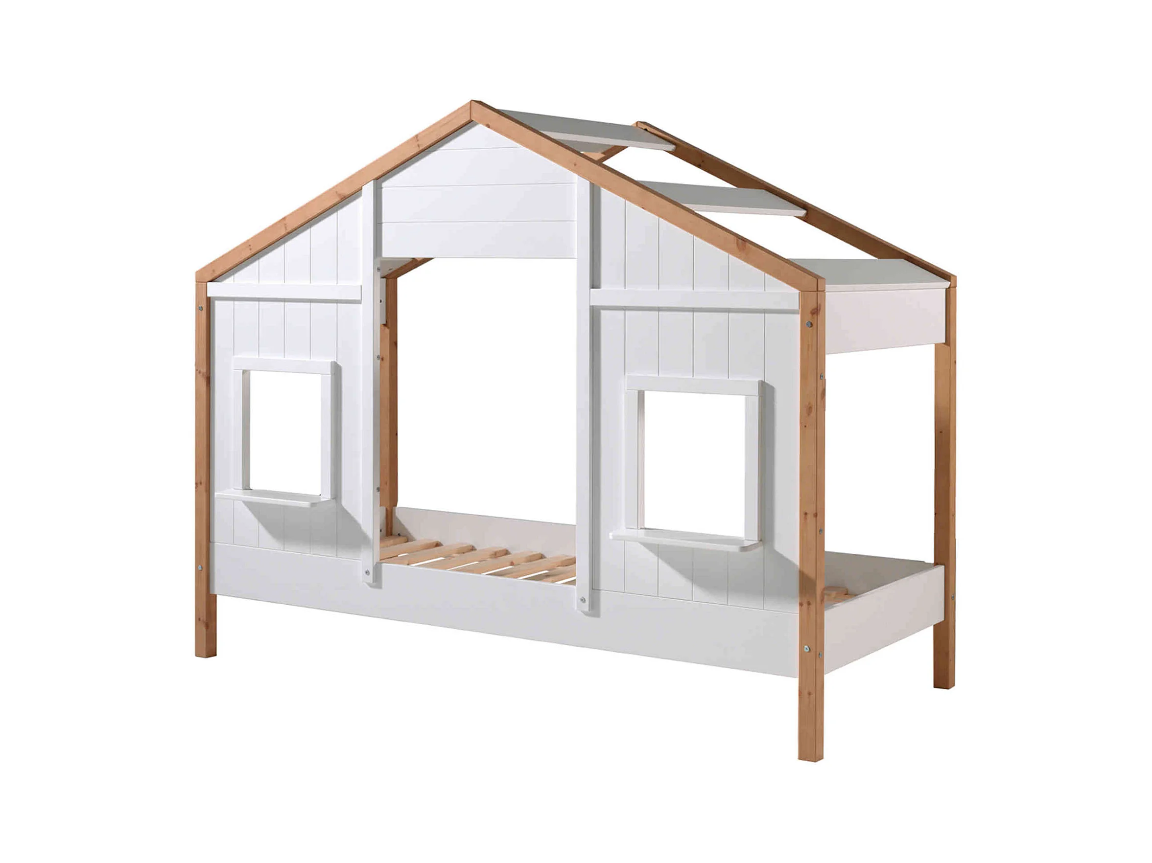 Lit cabane enfant en bois blanc et hêtre 90x200 cm - LT2051