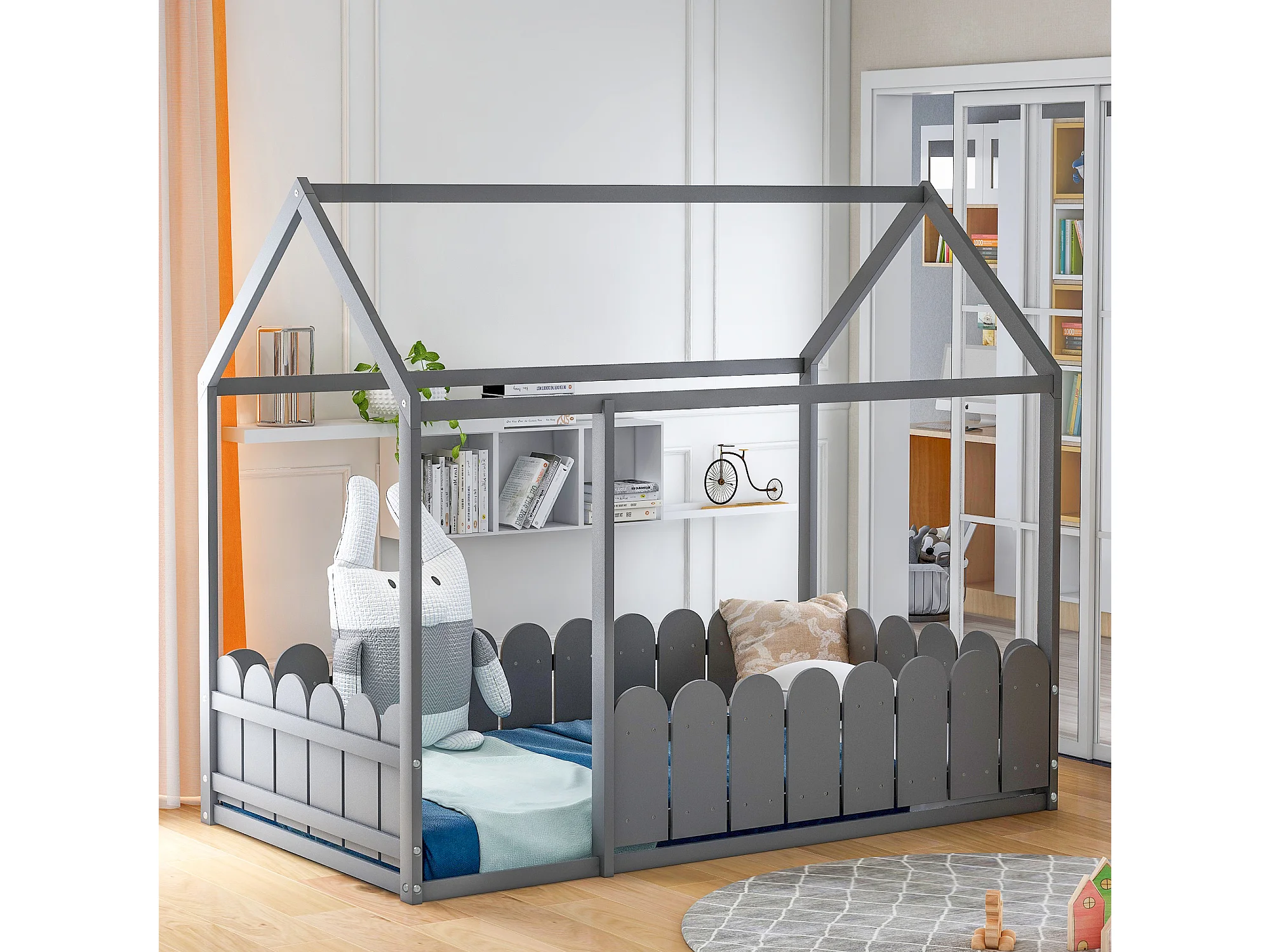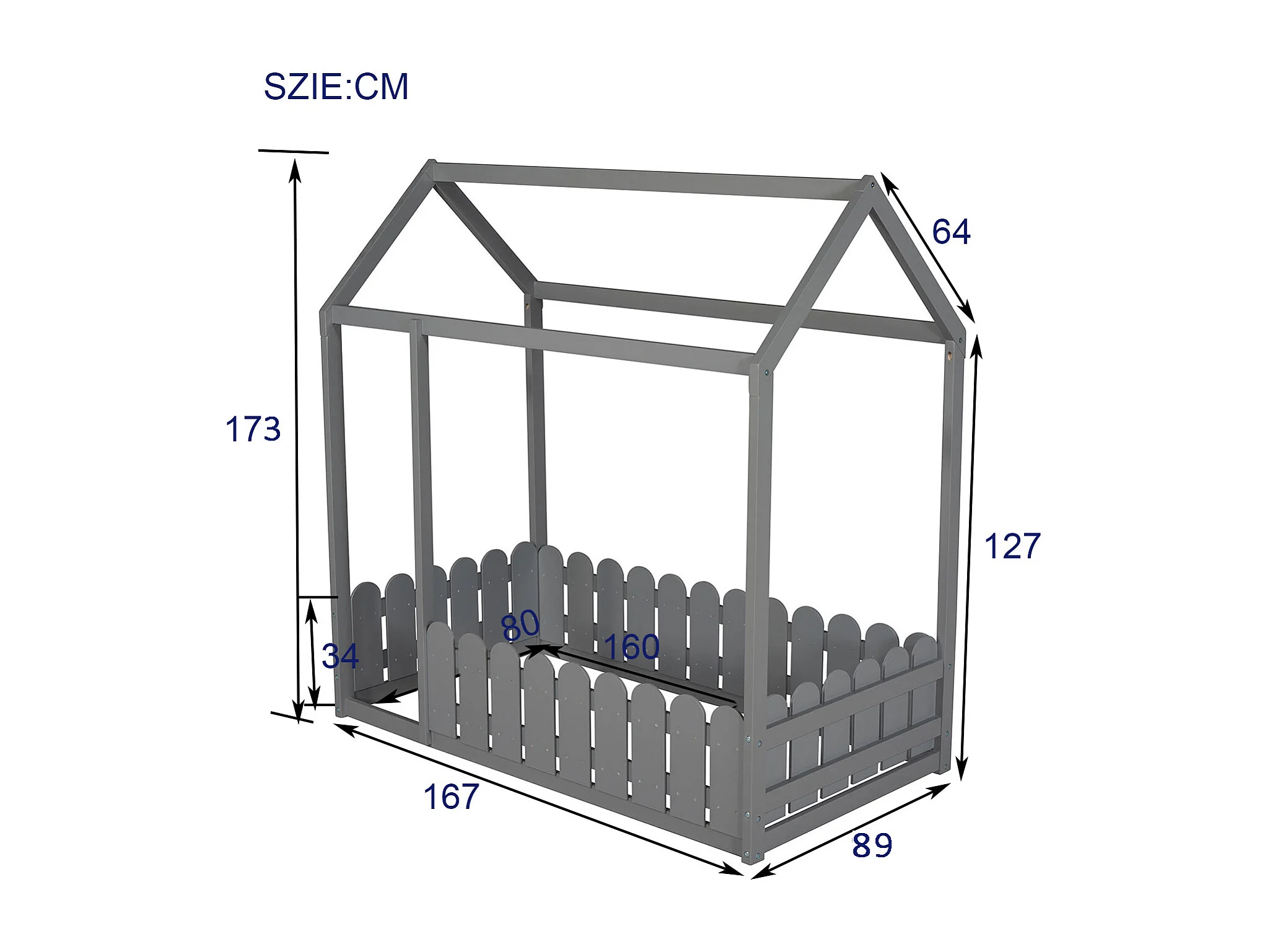 Lit Cabane Enfant En Bois - Lit De Sol - Cadre De Lit 80X160 cm - Lit De Jeu - Gris - A