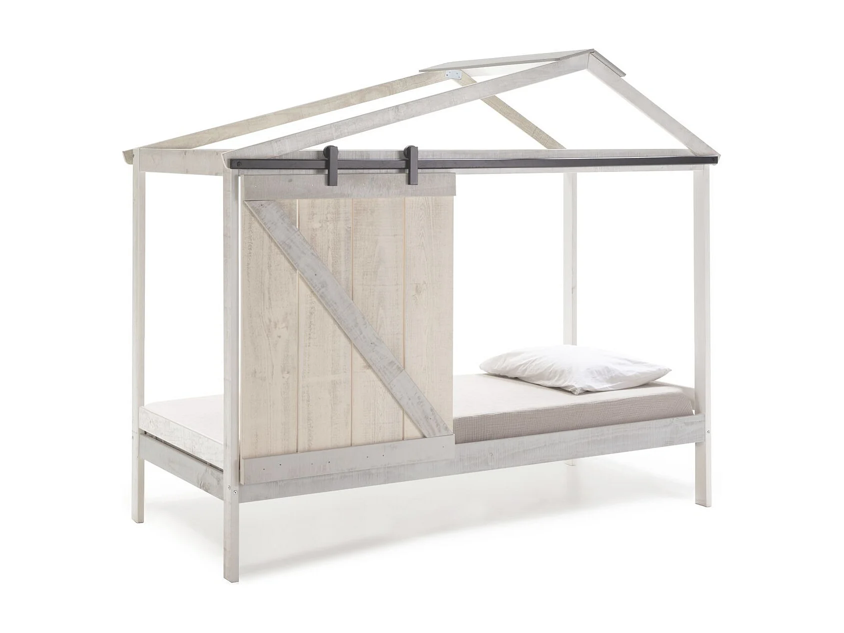 Lit cabane enfant rustique 90x190 cm en bois blanc/gris - Emile