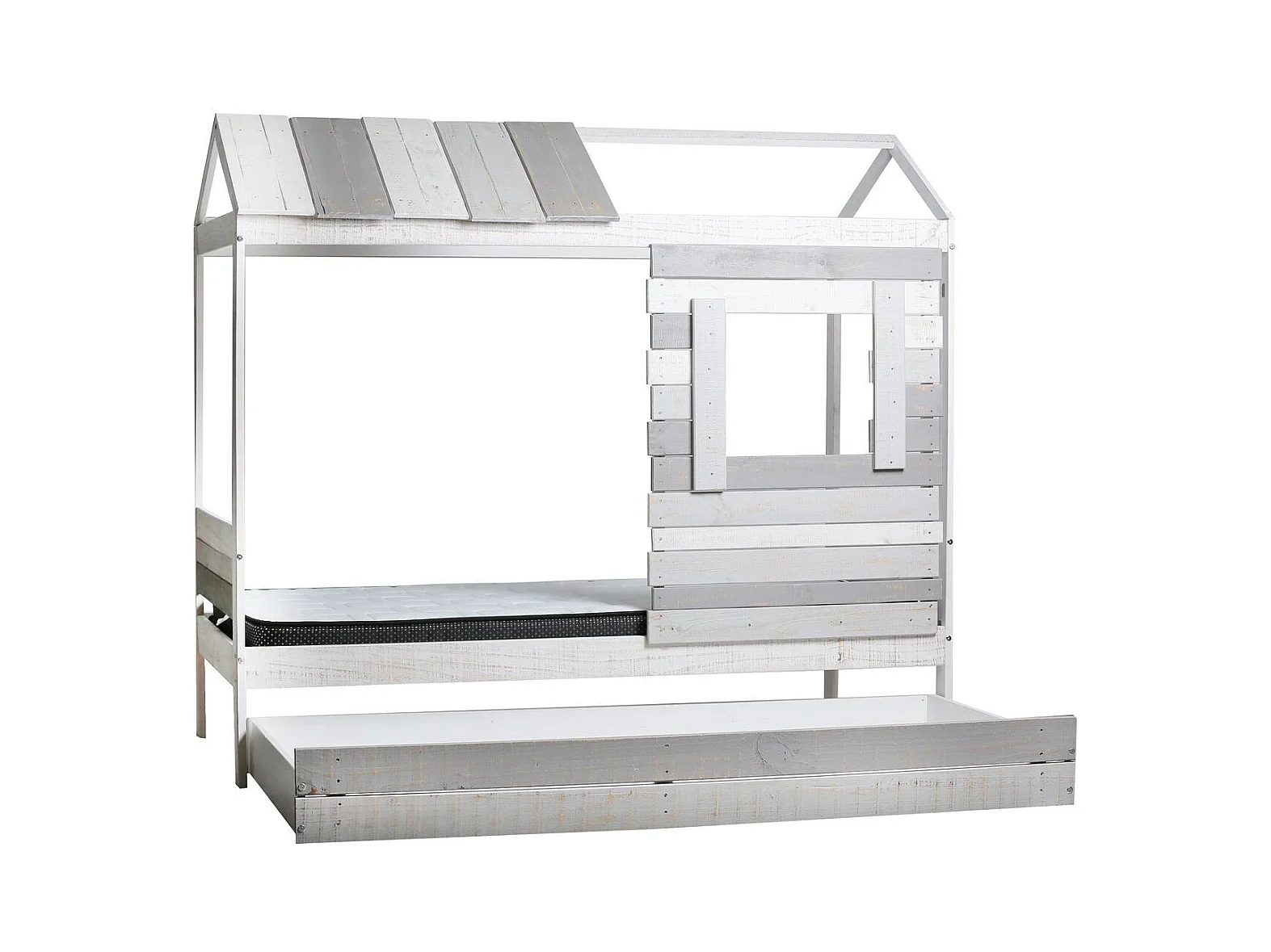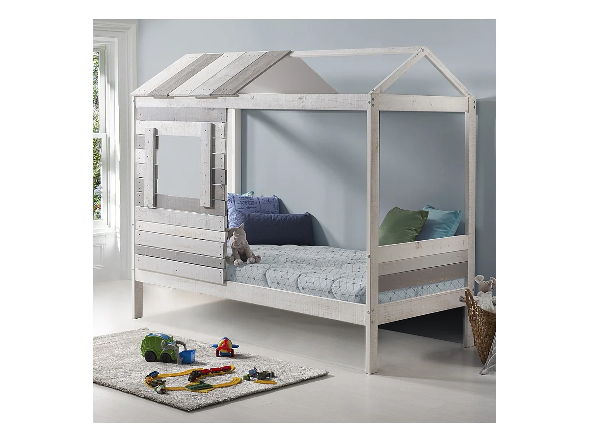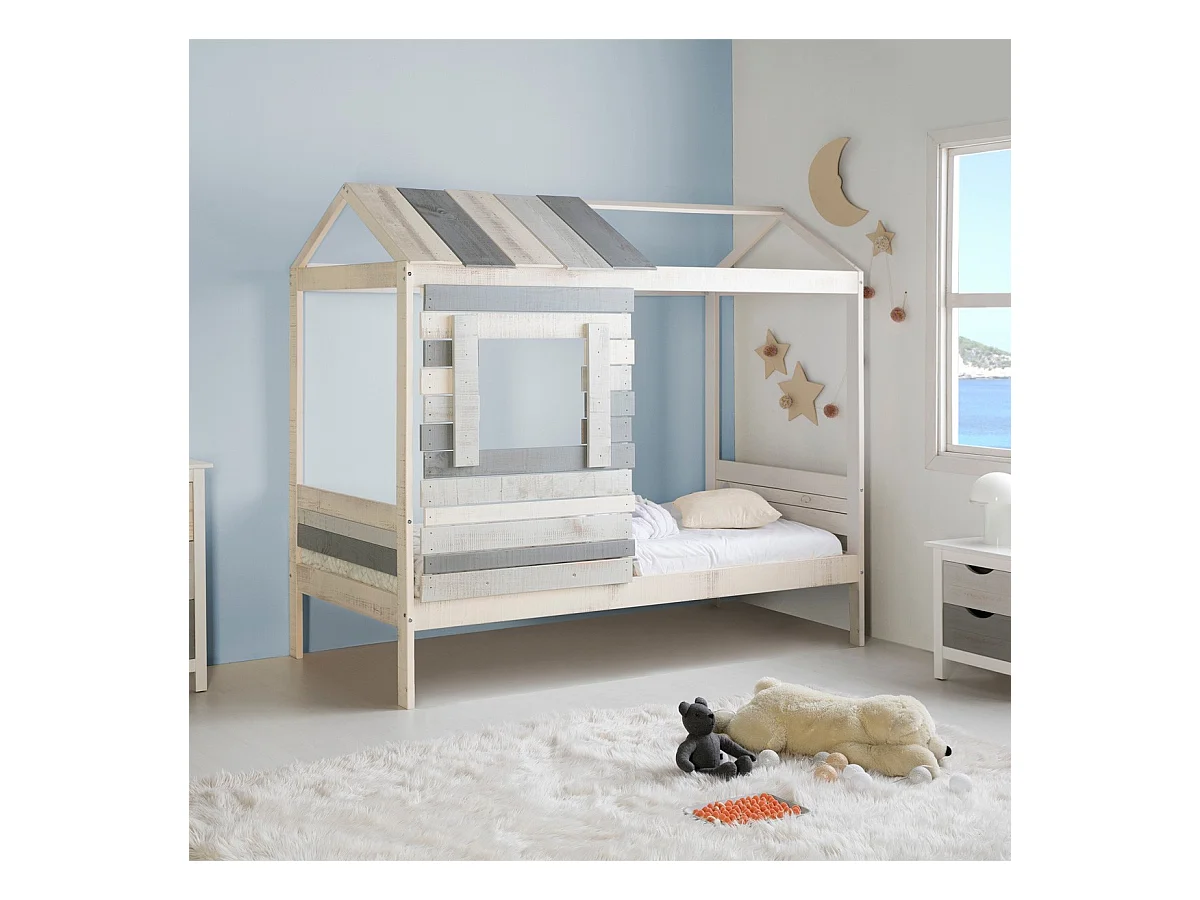 Lit cabane enfant rustique 90x190 cm en bois clair/gris - Sue