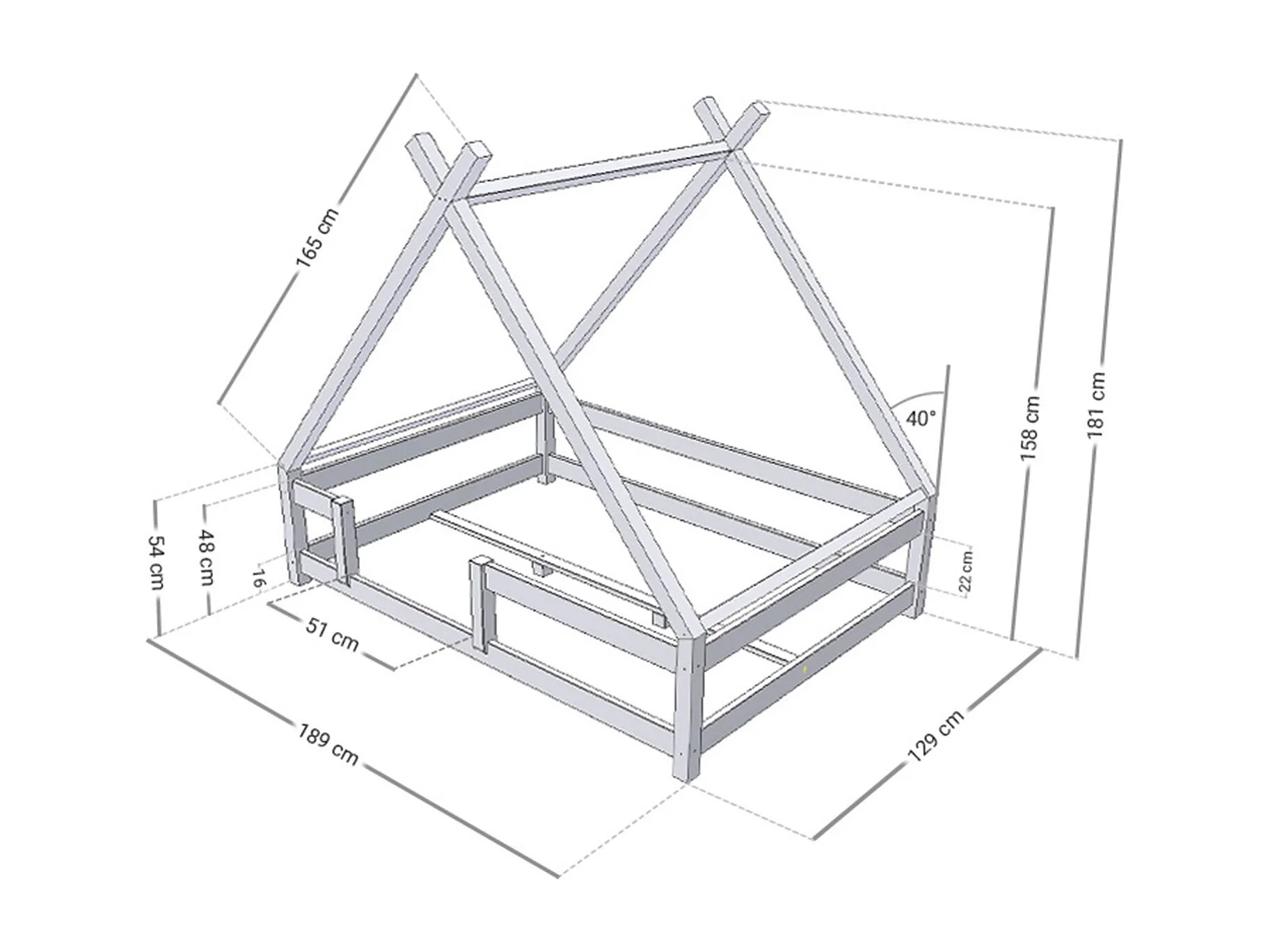 Lit cabane enfant TAHUKA 120 x 180 rose pastel
