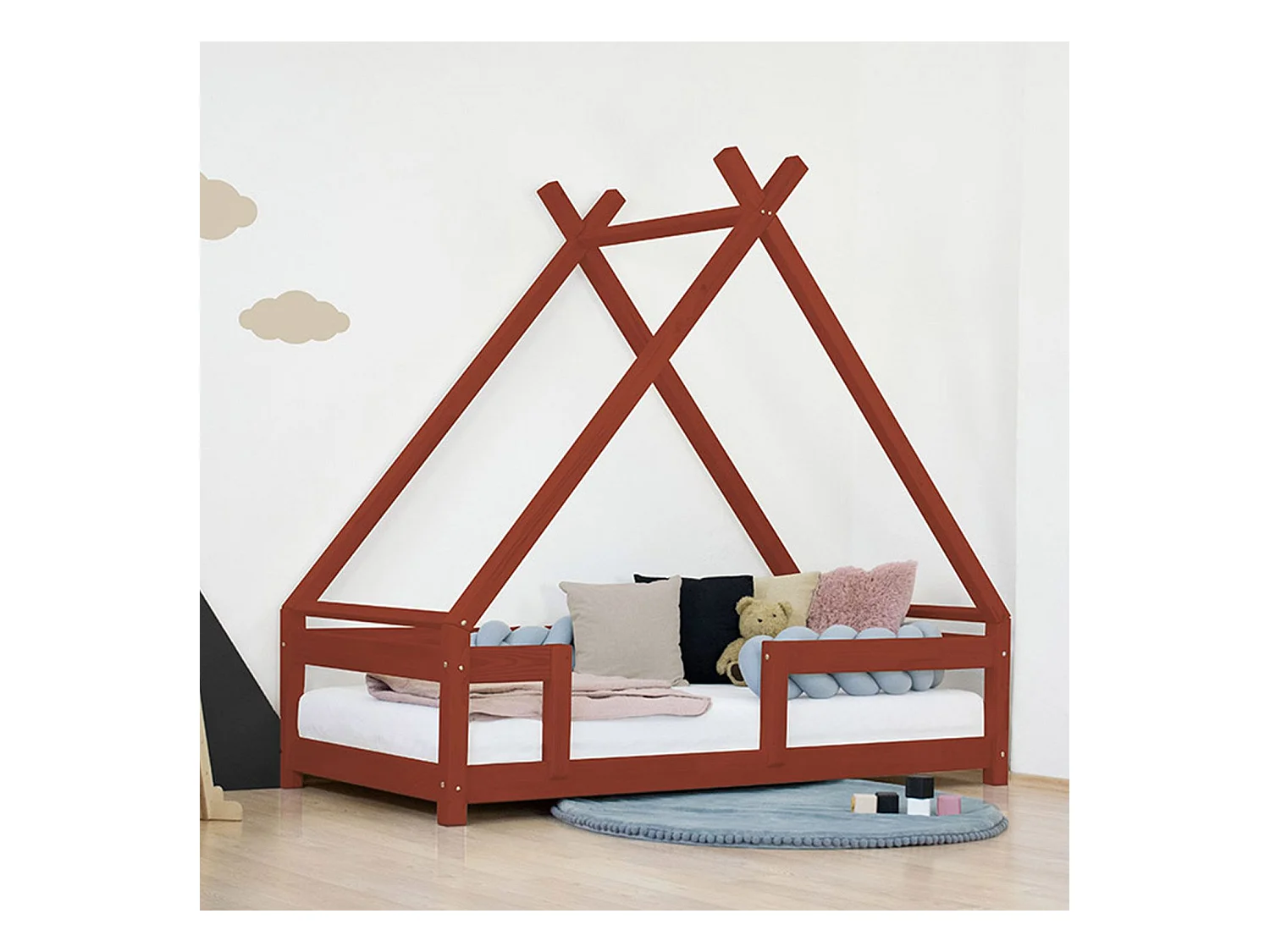 Lit cabane enfant TAHUKA 120 x 180 rouge brique