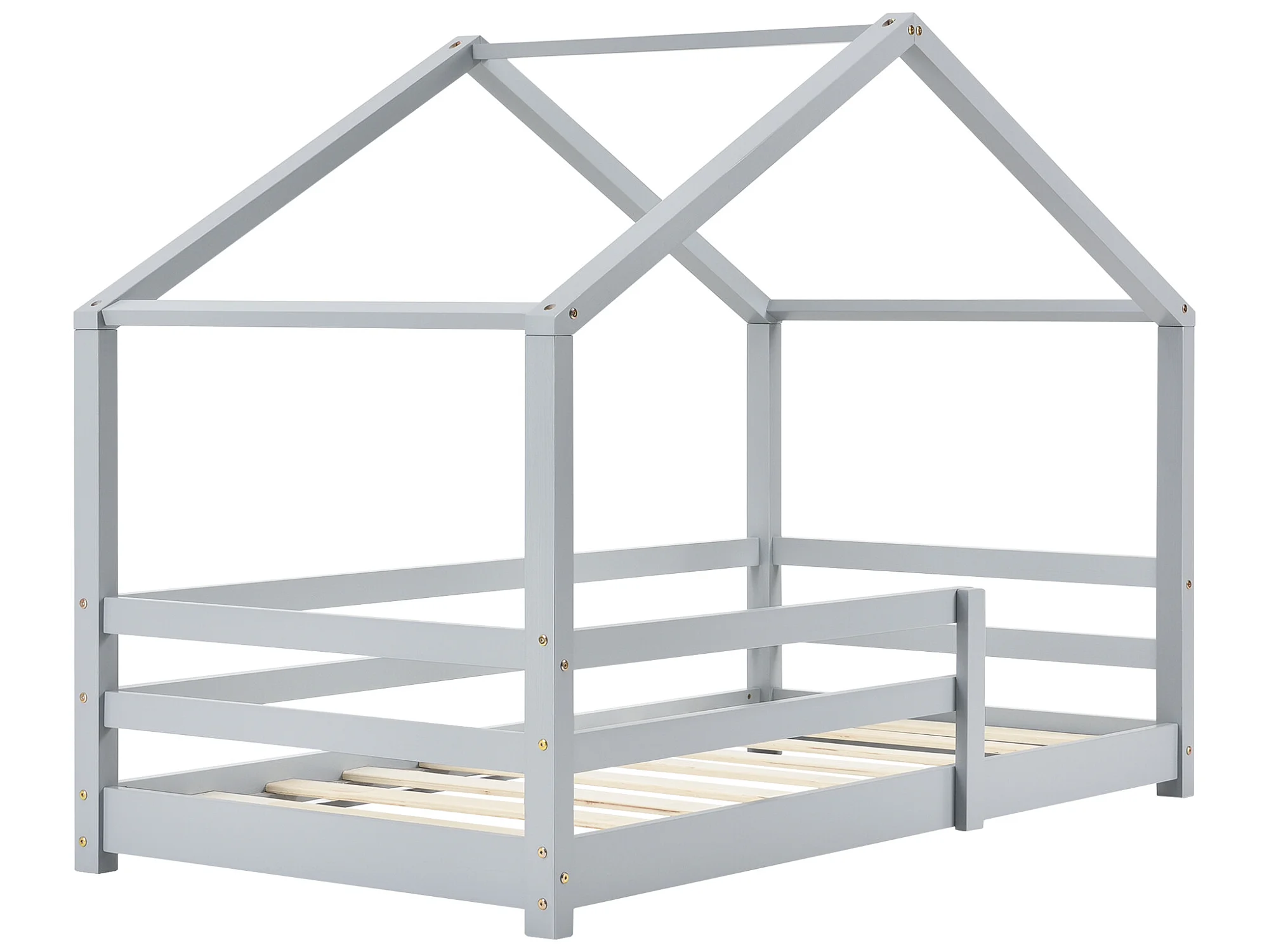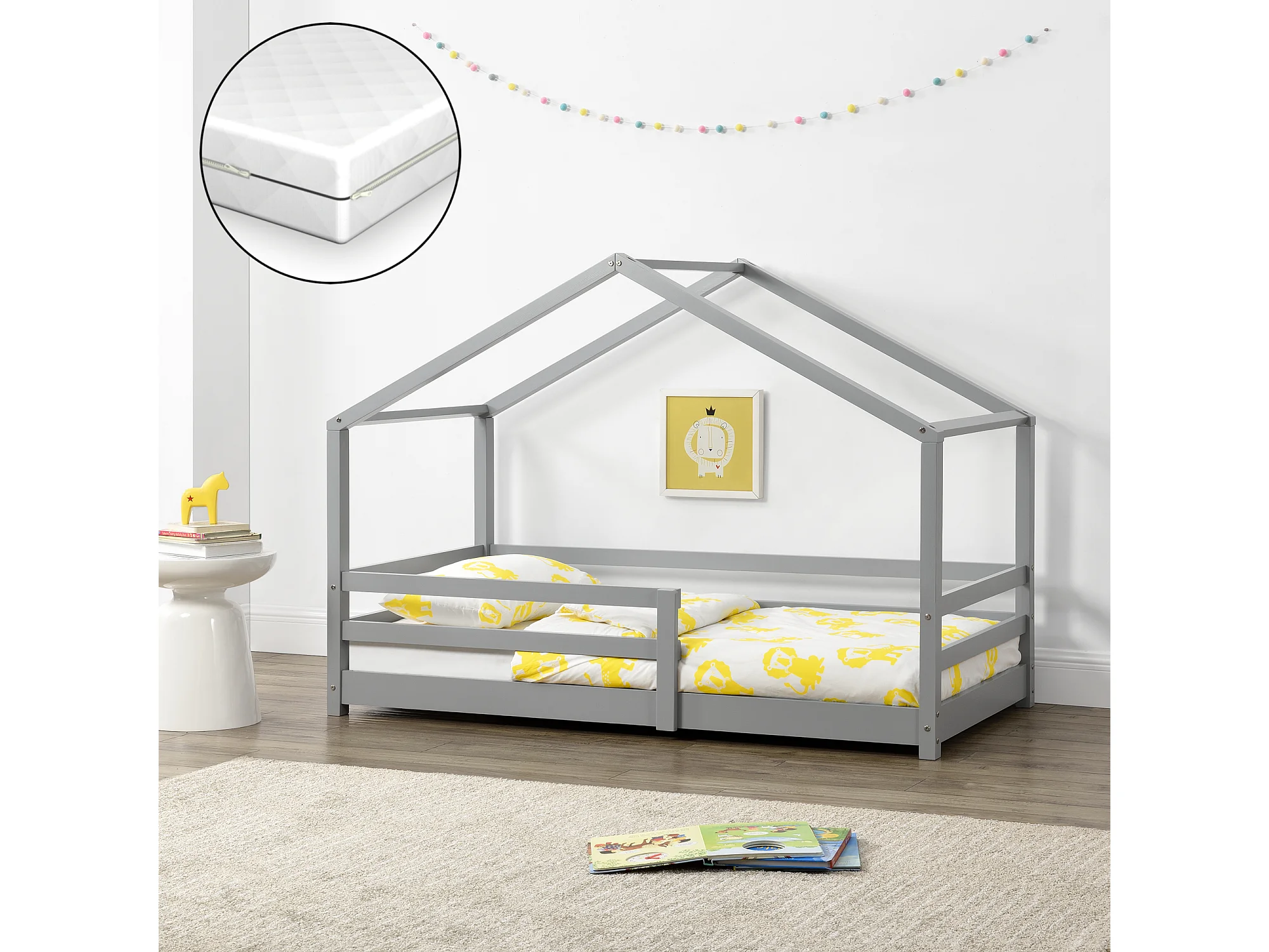 Lit Cabane Knätten Avec Grille De Protection Matelas Orthopédique 160X80Cm Gris Clair
