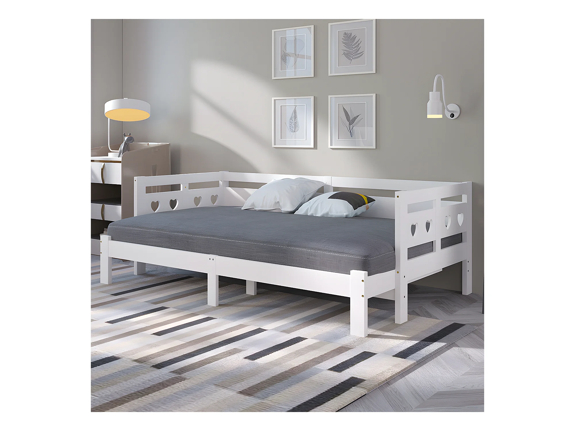 Lit cabane Lit de jour lit extensible pin massif - Blanc - Sweiko