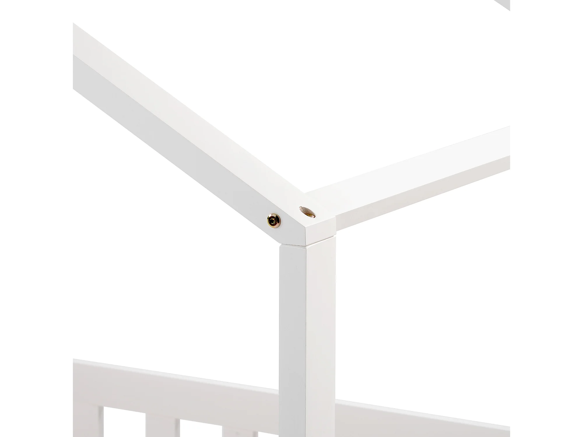 Lit cabane Lit enfant 90x200 cm avec protection anti-chute, certifié FSC, sommier, bois blanc, sans matelas