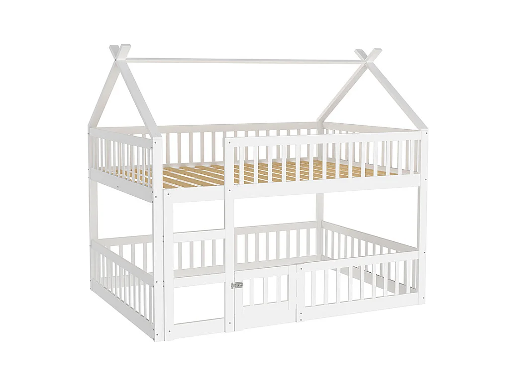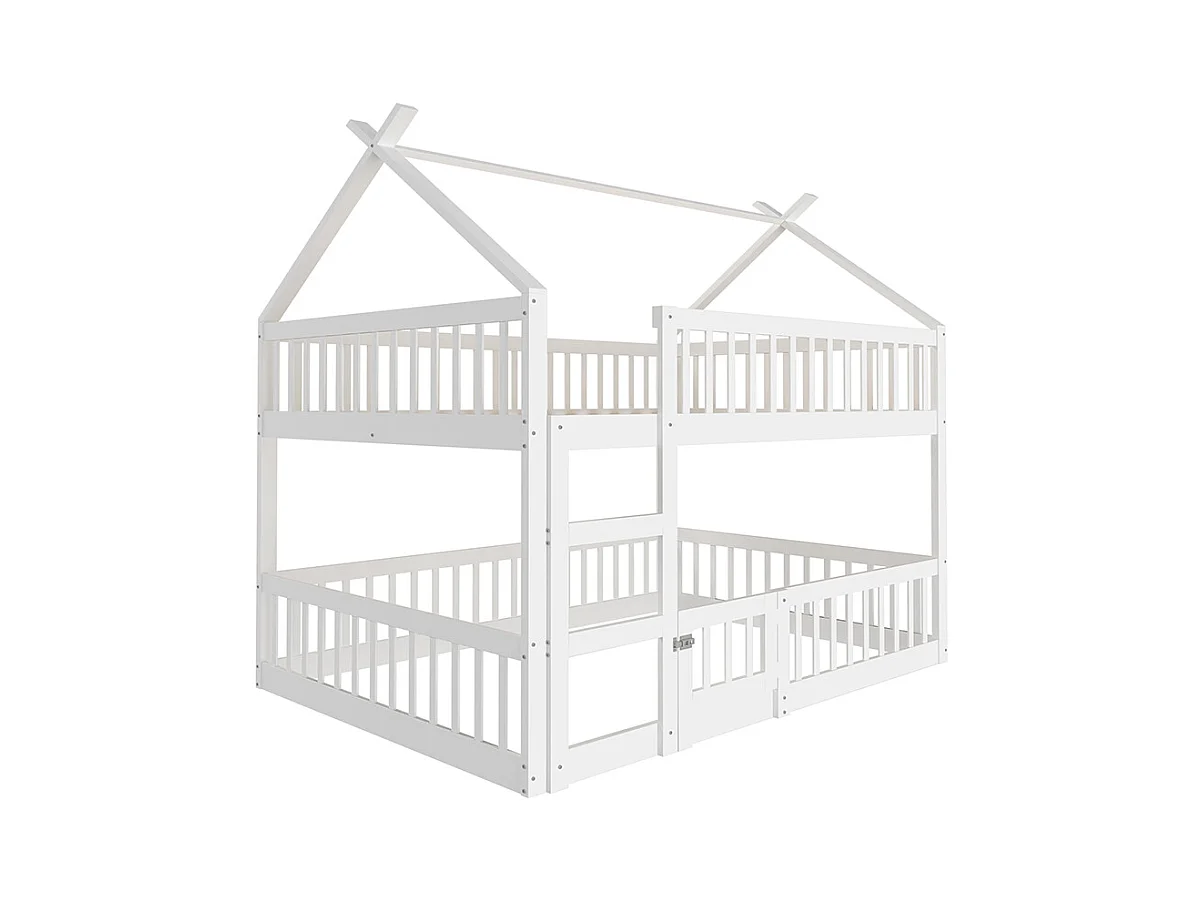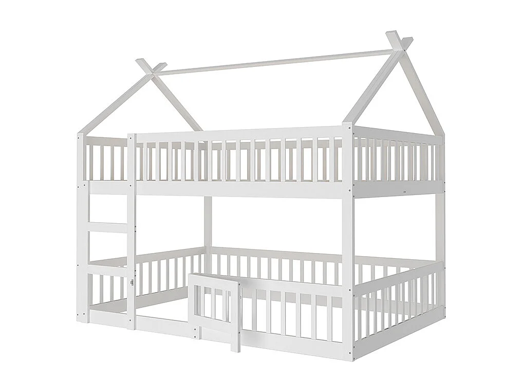 Lit cabane Lit superposé avec escalier 140x200 cm Lit familial pour enfants Lit Loft Design en bois massif Blanc