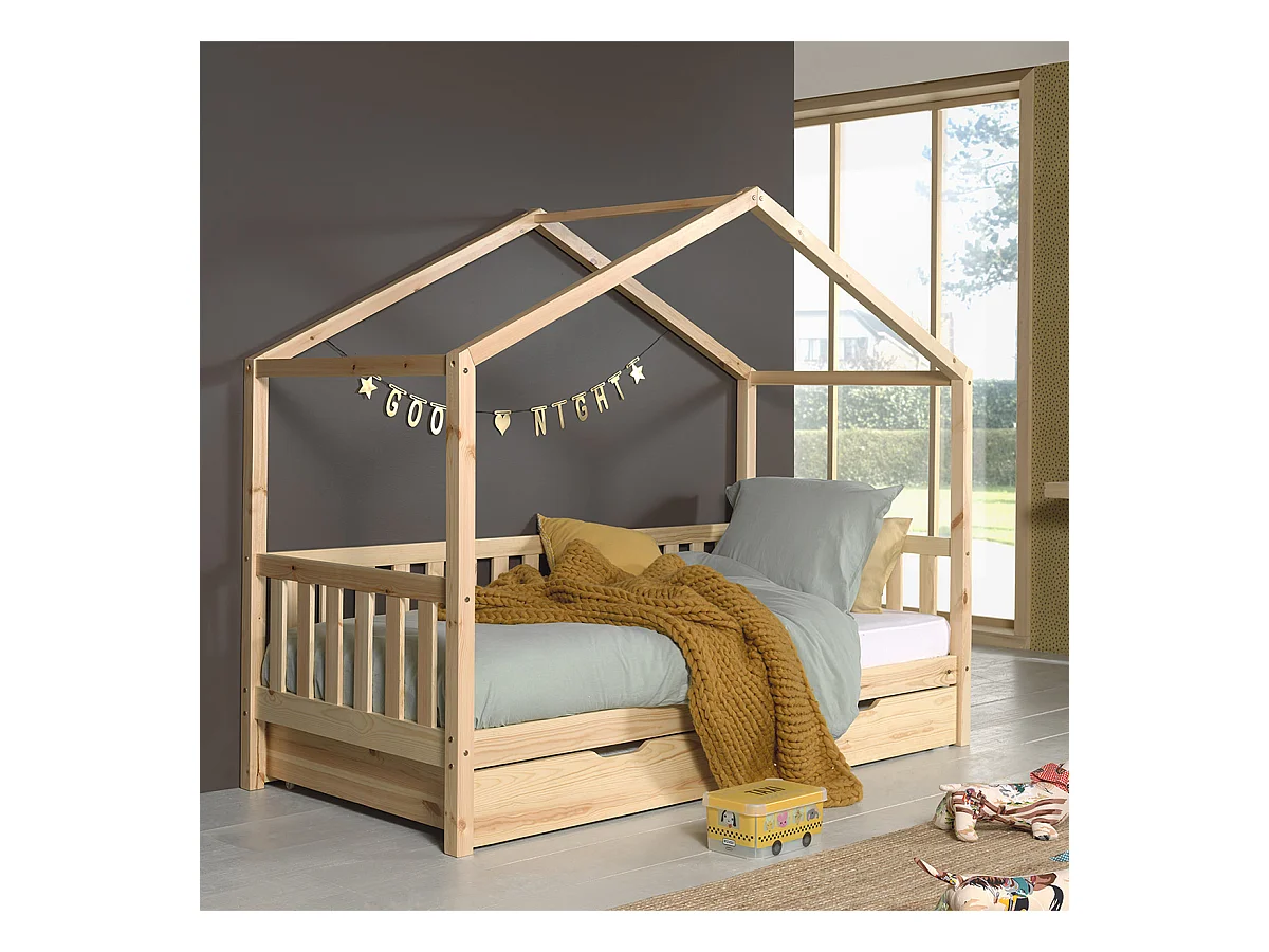 Pack - Lit Enfant, Barrière & Tiroir "Dallas II" 90x200cm Naturel